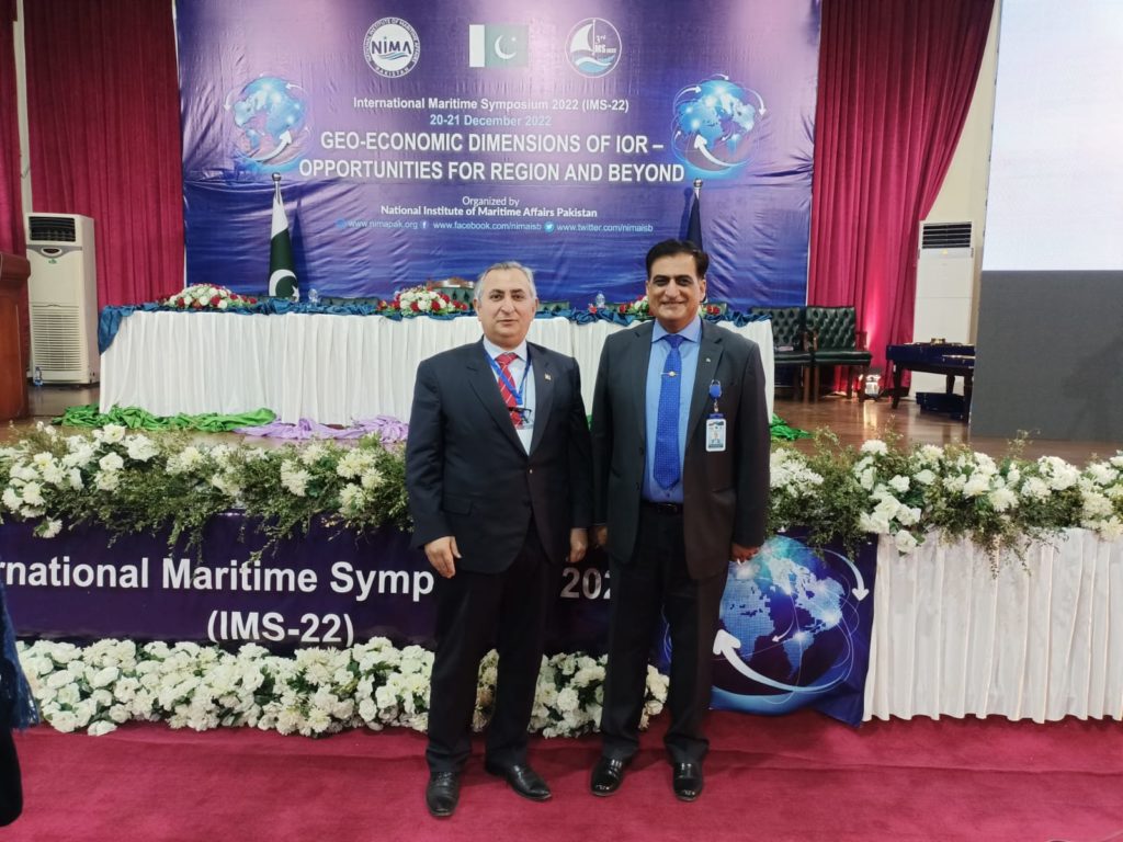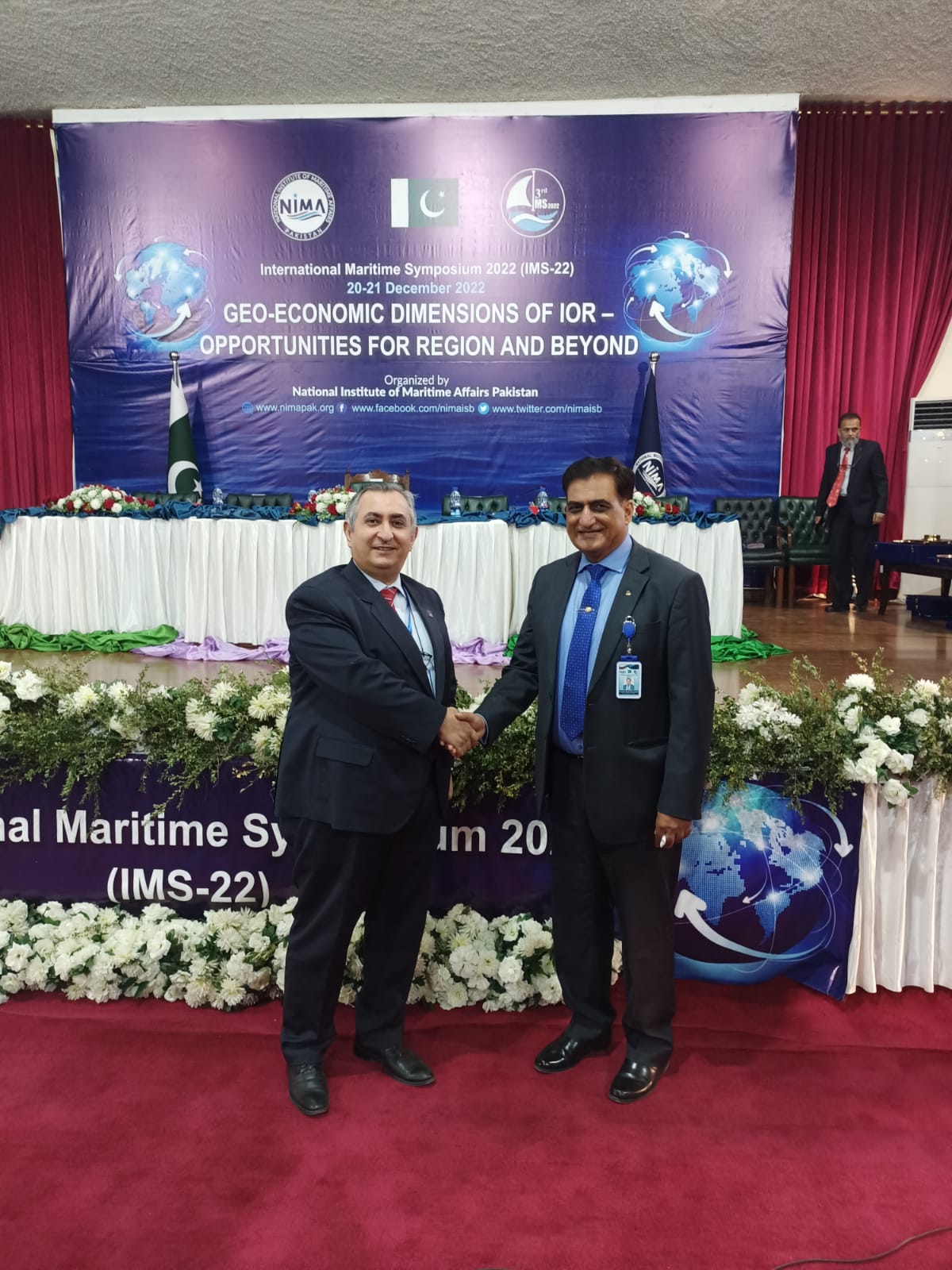 Директор АНКАСАМ Профессор Мехмет Сейфеттин Эрол встретился с Директором Национального института морских дел (NIMA) вице-адмиралом в отставке Ахмедом Саидом (высший офицер) на симпозиуме под названием Геоэкономические аспекты возможностей для региона и и его пределов, организованном Национальным институтом морских дел (NIMA) в Пакистане.