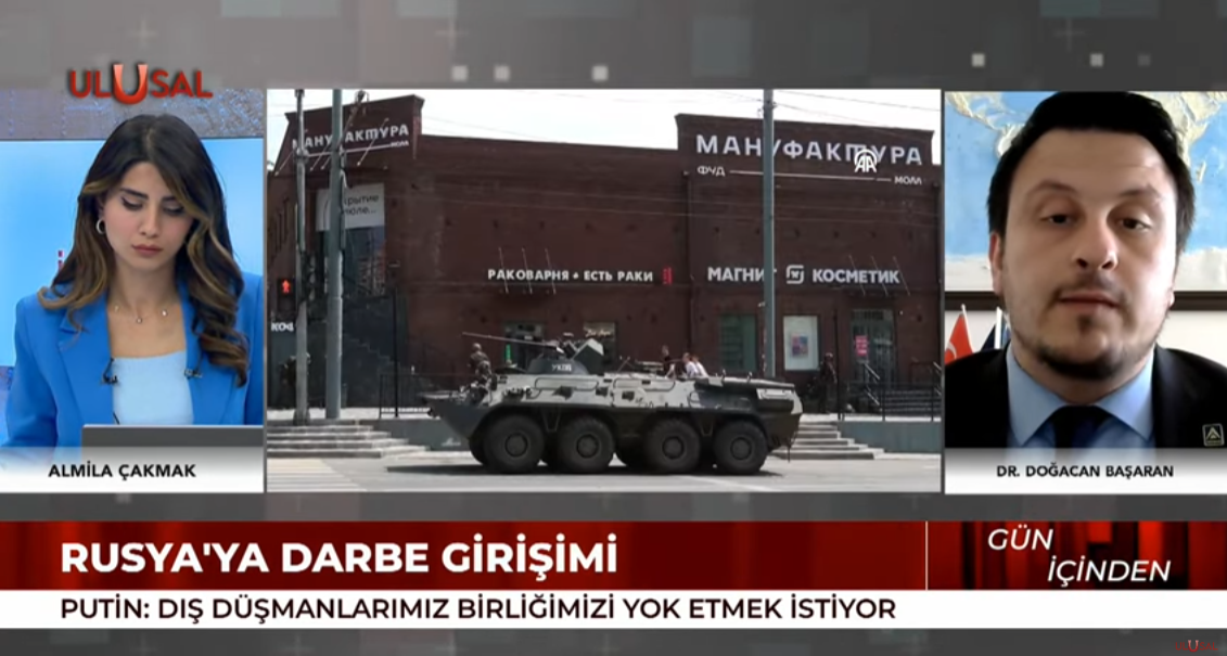 Специалист по международным отношениям Анкарского центра кризисных и политических исследований (ANKASAM) доктор Догачан Башаран прокомментировал попытку восстания группы Вагнера на Улусал Канал. В своей оценке Башаран заявил, что инициатива группы Вагнера не имеет конкретной инициативы в российском народе, и поэтому московская администрация преодолеет попытку восстания. Кроме того, Башаран заявил, что на фоне этого инцидента эффективным является тот факт, что в российско-украинской войне все пошло не так, как планировал Кремль.