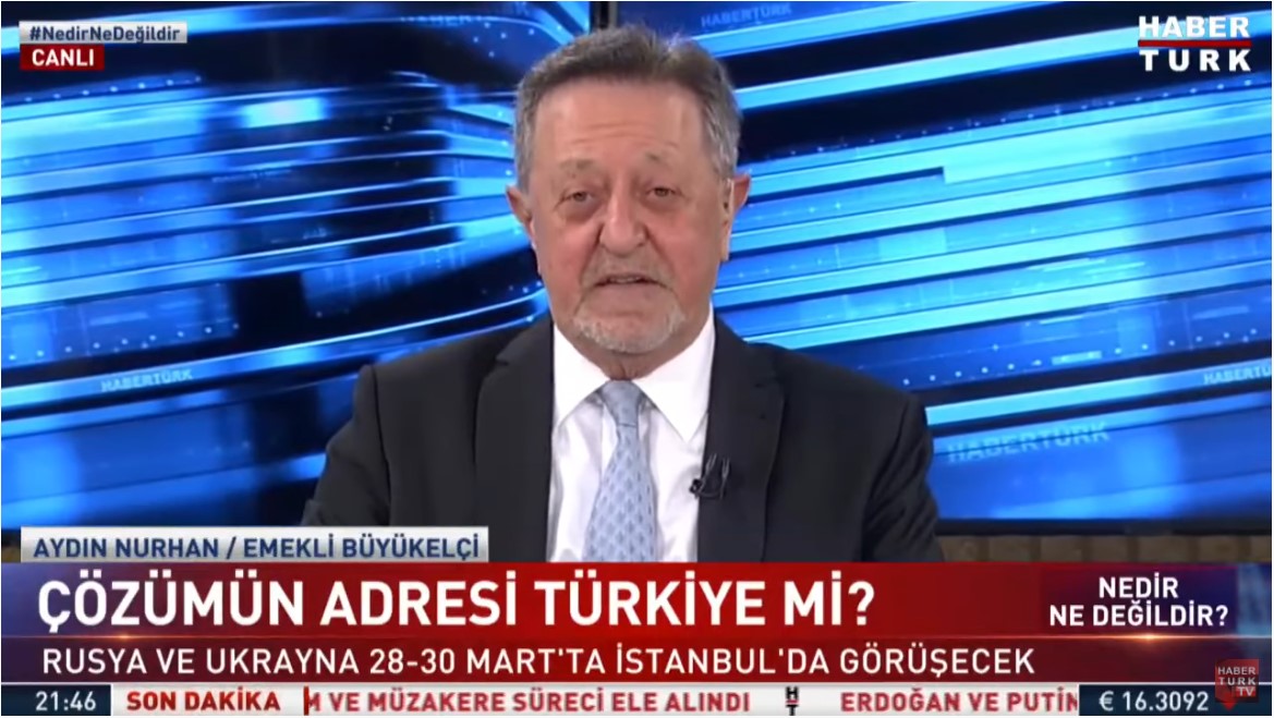 Ankara Kriz ve Siyaset Araştırmaları Merkezi (ANKASAM) Başkan Başdanışmanı Emekli Büyükelçi Aydın Nurhan, Haber Türk’te Mehmet Akif Ersoy’un sunuculuğunu yaptığı Nedir Ne Değildir? programına konuk oldu. Rusya-Ukrayna Savaşı’na ilişkin değerlendirmelerde bulunan Nurhan, Türkiye’nin diplomasi çabalarının önemini vurguladı. Nurhan, savaşın Balkanlara sıçrama ihtimaline de dikkat edilmesi gerektiğini ifade etti.