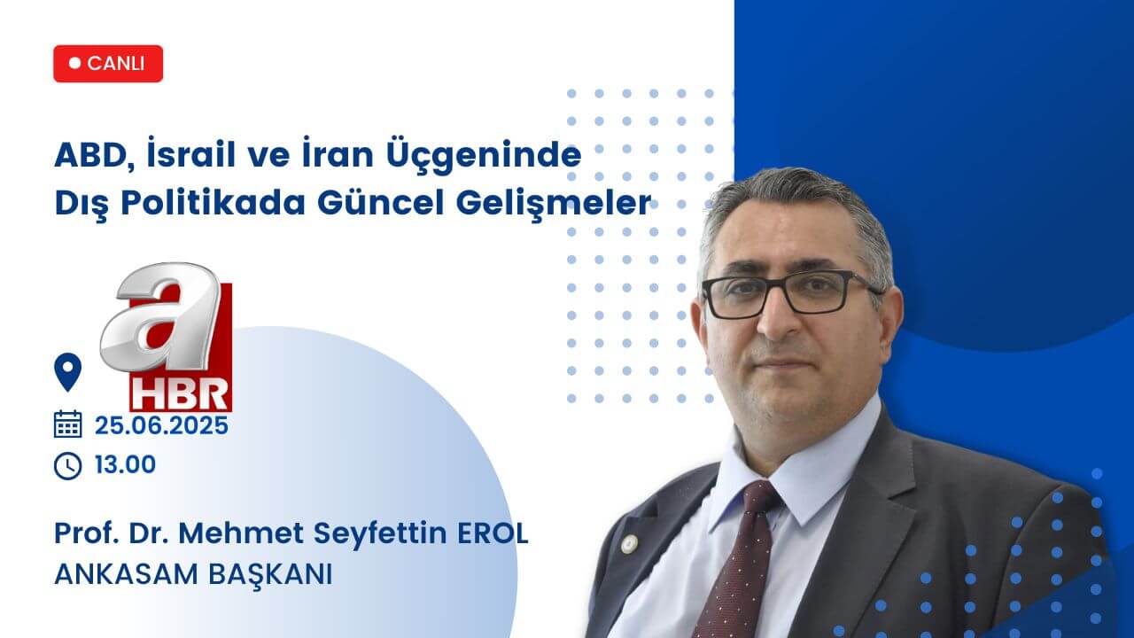 Yazar: ANKASAM AdminTarih:24/06/2025Paylaş:TwitterFacebookLinkedinReddItWhatsAppTelegramEmailYazdırCopy URL DuyurularANKASAM Başkanı Prof. Dr. Mehmet Seyfettin Erol A Haber’de! Benzer İçerikler ANKASAM BAKIŞTürk-Amerikan İlişkilerinde Gelecek Arayışları ve “TRÇ İttifakı” HABERLERBerdimuhamedov Bakü’de: Azerbaycan ve Türkmenistan önemli konularda diyaloğu hızlandırıyor AVRASYAKremlin Sözcüsü: “Rusya, Ermenistan’la tüm alanlarda ilişkileri geliştirmeye ilgi duyuyor” AVRUPAAB, Suriye’ye yönelik ekonomik yaptırımları kaldırma kararı aldı ASYA-PASİFİKTayland ve Endonezya, İlişkilerini Stratejik Ortaklık Düzeyine YükselttiBu yazı şu dillerde de mevcuttur: English Русский🗓️ 25.06.2025⏰ 13.00📍 A Haber📺 Ajans ProgramıANKASAM AdminÖnceki İçerikANKASAM Uluslararası İlişkiler Danışmanı Dr. Öğr. Üyesi Kadir Ertaç Çelik, 24TV’de!Sonraki İçerikANKASAM Uluslararası İlişkiler Danışmanı Dr. Öğr. Üyesi Kadir Ertaç Çelik A Haber’de!