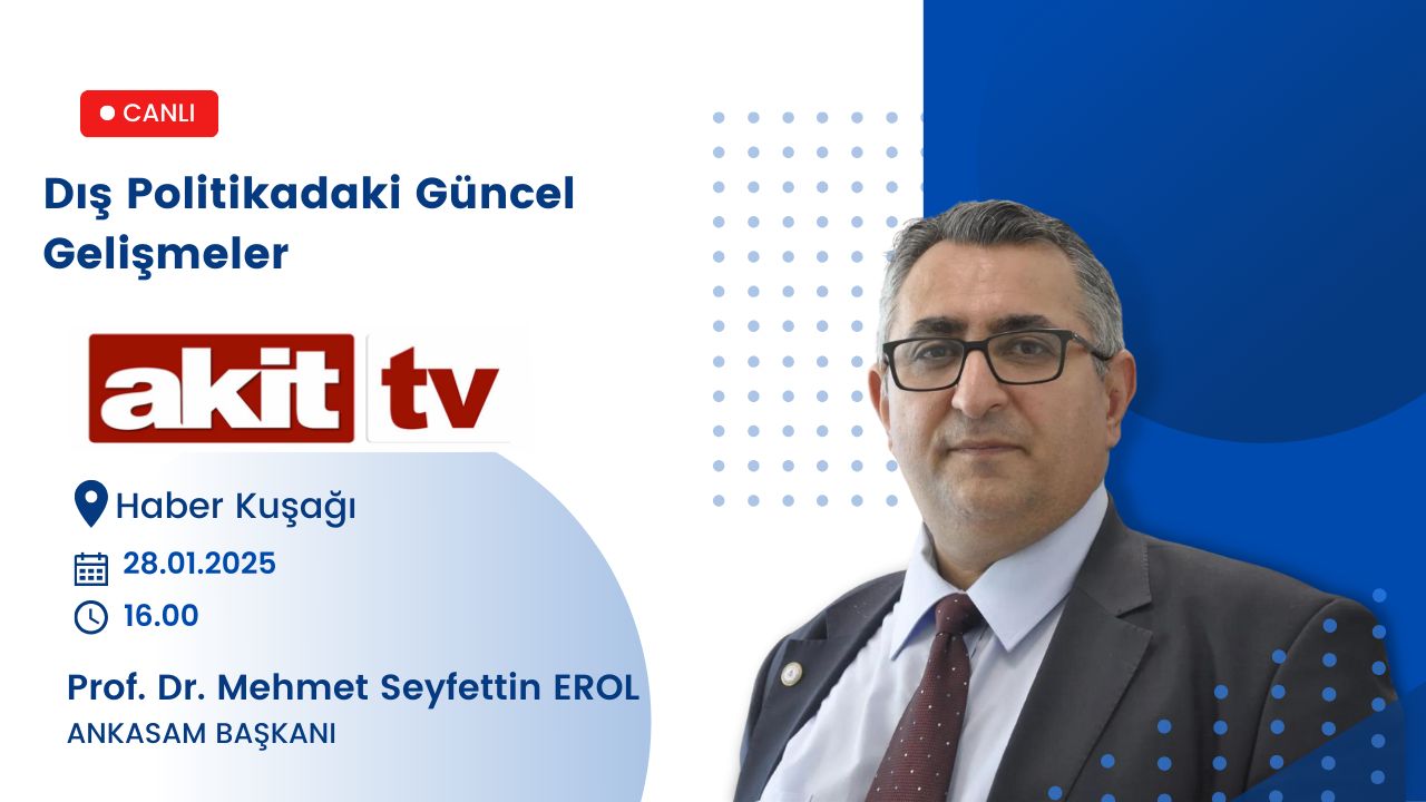Yazar: ANKASAM AdminTarih:27/01/2025Paylaş:TwitterFacebookLinkedinReddItWhatsAppTelegramEmailYazdırCopy URL ETKİNLİKLERDuyurularANKASAM Başkanı Prof. Dr. Mehmet Seyfettin Erol, Akit TV’de! Benzer İçerikler ANKASAM BAKIŞTürk-Amerikan İlişkilerinde Gelecek Arayışları ve “TRÇ İttifakı” HABERLERBerdimuhamedov Bakü’de: Azerbaycan ve Türkmenistan önemli konularda diyaloğu hızlandırıyor AVRASYAKremlin Sözcüsü: “Rusya, Ermenistan’la tüm alanlarda ilişkileri geliştirmeye ilgi duyuyor” AVRUPAAB, Suriye’ye yönelik ekonomik yaptırımları kaldırma kararı aldı ASYA-PASİFİKTayland ve Endonezya, İlişkilerini Stratejik Ortaklık Düzeyine YükselttiBu yazı şu dillerde de mevcuttur: English Русский📆 28.01.2025⏰ 16.00📍 Akit TVANKASAM AdminÖnceki İçerikDeğişen Küresel Jeopolitikte 2025: Nasıl Bir Dünya?Sonraki İçerikANKASAM Başkanı Prof. Dr. Mehmet Seyfettin Erol, TRT Ankara Radyosu’nda!