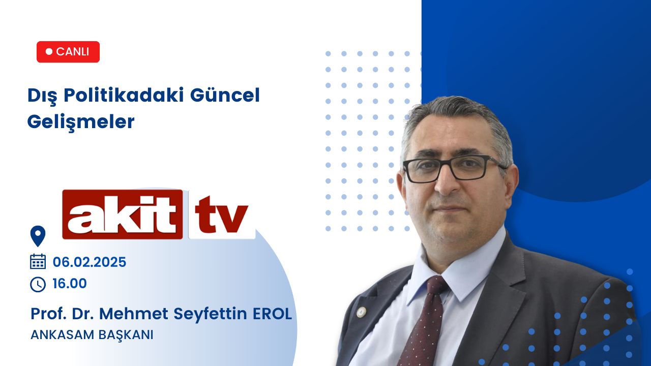 Yazar: ANKASAM AdminTarih:05/02/2025Paylaş:TwitterFacebookLinkedinReddItWhatsAppTelegramEmailYazdırCopy URL DuyurularANKASAM Başkanı Prof. Dr. Mehmet Seyfettin Erol Akit TV’de! Benzer İçerikler AVRASYARus diplomat, ABD başkanlık tartışmasını bir başka şov olarak nitelendirdi ANKASAM BAKIŞBatı’nın Rusya’yı Çevreleme Stratejisi ve ABD ile Avrupa Arasındaki Ayrılıklar ANKASAM BAKIŞABD’de Derin Hesaplaşma!🗓️ 06.02.2025⏰ 16.00📺 Akit TV, Haber KuşağıEtiketlerABDBültenhaberIrakİranRusyaTürkiyeUkraynaANKASAM AdminÖnceki İçerikANKASAM Başkanı Prof. Dr. Mehmet Seyfettin Erol Ulusal Kanal’da!Sonraki İçerikANKASAM Başkanı Prof. Dr. Mehmet Seyfettin Erol TRT Türkiye’nin Sesi Radyosu’nda!