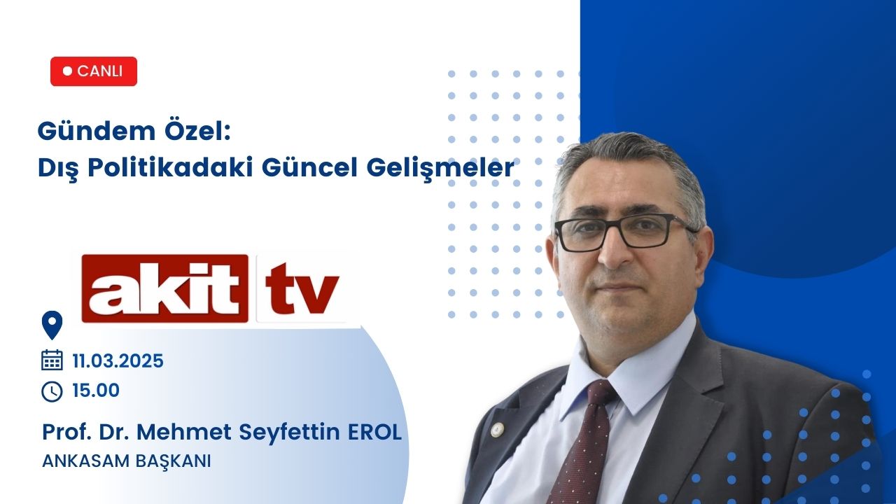 Yazar: ANKASAM AdminTarih:11/03/2025Paylaş:TwitterFacebookLinkedinReddItWhatsAppTelegramEmailYazdırCopy URL DuyurularANKASAM Başkanı Prof. Dr. Mehmet Seyfettin Erol, Akit TV’de! Benzer İçerikler ANKASAM BAKIŞTürk-Amerikan İlişkilerinde Gelecek Arayışları ve “TRÇ İttifakı” HABERLERBerdimuhamedov Bakü’de: Azerbaycan ve Türkmenistan önemli konularda diyaloğu hızlandırıyor AVRASYAKremlin Sözcüsü: “Rusya, Ermenistan’la tüm alanlarda ilişkileri geliştirmeye ilgi duyuyor” AVRUPAAB, Suriye’ye yönelik ekonomik yaptırımları kaldırma kararı aldı ASYA-PASİFİKTayland ve Endonezya, İlişkilerini Stratejik Ortaklık Düzeyine YükselttiBu yazı şu dillerde de mevcuttur: English Русский📆 11.03.2025⏰ 15.00📍 Akit TV Haber KuşağıANKASAM AdminÖnceki İçerikANKASAM Başkanı Prof. Dr. Mehmet Seyfettin Erol Milliyet Gazetesi’nde ABD’nin Trump Döneminde Değişen Rusya ve Avrupa Politikalarını DeğerlendirdiSonraki İçerikANKASAM Başkanı Prof. Dr. Mehmet Seyfettin Erol, TRT Türkiye’nin Sesi Radyosu’nda!