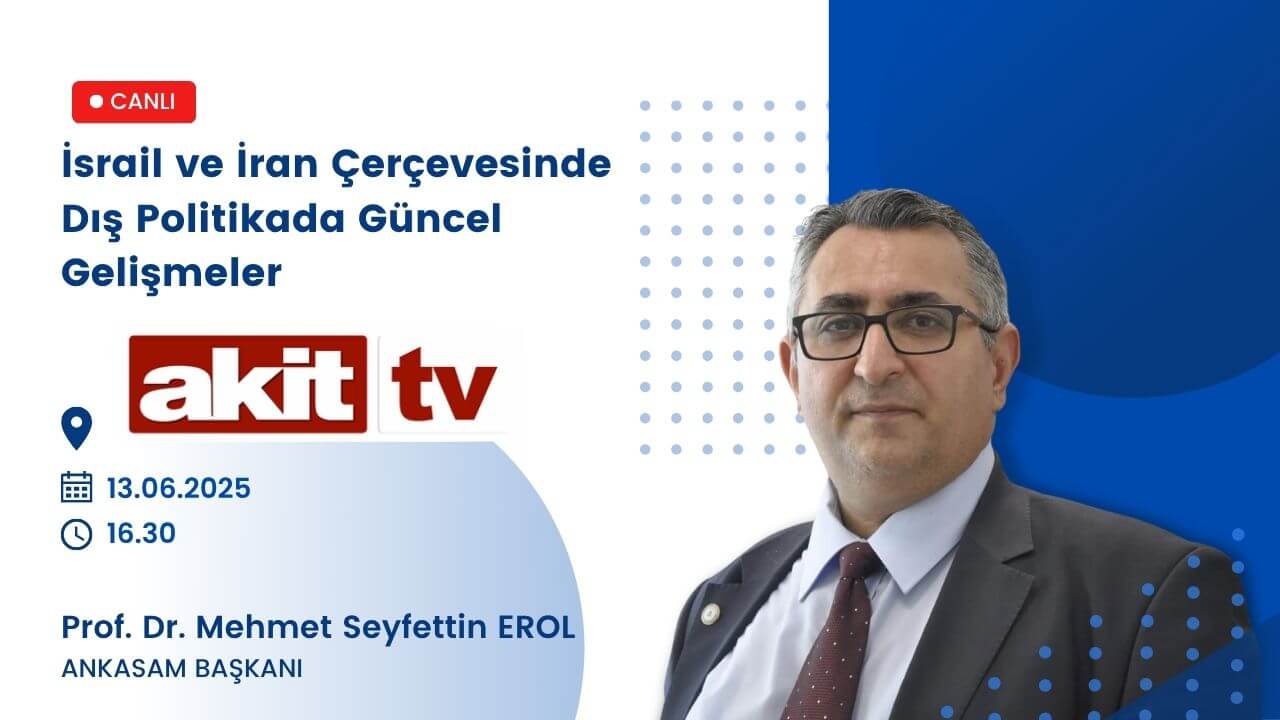 Yazar: ANKASAM AdminTarih:13/06/2025Paylaş:TwitterFacebookLinkedinReddItWhatsAppTelegramEmailYazdırCopy URL DuyurularANKASAM Başkanı Prof. Dr. Mehmet Seyfettin Erol Akit TV’de! Benzer İçerikler ANKASAM BAKIŞTürk-Amerikan İlişkilerinde Gelecek Arayışları ve “TRÇ İttifakı” HABERLERBerdimuhamedov Bakü’de: Azerbaycan ve Türkmenistan önemli konularda diyaloğu hızlandırıyor AVRASYAKremlin Sözcüsü: “Rusya, Ermenistan’la tüm alanlarda ilişkileri geliştirmeye ilgi duyuyor” AVRUPAAB, Suriye’ye yönelik ekonomik yaptırımları kaldırma kararı aldı ASYA-PASİFİKTayland ve Endonezya, İlişkilerini Stratejik Ortaklık Düzeyine Yükseltti🗓️ 13.06.2025⏰ 16.30📍 Akit TV📺 Gün Ortası ProgramıANKASAM AdminÖnceki İçerikANKASAM Başkanı Prof. Dr. Mehmet Seyfettin Erol TRT Türkiye’nin Sesi Radyosu’nda!Sonraki İçerikANKASAM Başkanı Prof. Dr. Mehmet Seyfettin Erol TV5’te!