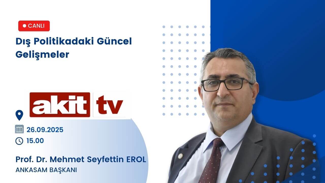 Yazar: ANKASAM AdminTarih:26/09/2025Paylaş:TwitterFacebookLinkedinReddItWhatsAppTelegramEmailYazdırCopy URL DuyurularANKASAM Başkanı Prof. Dr. Mehmet Seyfettin Erol Akit TV’de! Benzer İçerikler ANKASAM BAKIŞTürk-Amerikan İlişkilerinde Gelecek Arayışları ve “TRÇ İttifakı” HABERLERBerdimuhamedov Bakü’de: Azerbaycan ve Türkmenistan önemli konularda diyaloğu hızlandırıyor AVRASYAKremlin Sözcüsü: “Rusya, Ermenistan’la tüm alanlarda ilişkileri geliştirmeye ilgi duyuyor” AVRUPAAB, Suriye’ye yönelik ekonomik yaptırımları kaldırma kararı aldı ASYA-PASİFİKTayland ve Endonezya, İlişkilerini Stratejik Ortaklık Düzeyine YükselttiBu yazı şu dillerde de mevcuttur: English Русский🗓️ 26.09.2025⏰ 15.00📍 Akit TV📺 Haber KuşağıANKASAM AdminÖnceki İçerikANKASAM Başkanı Prof. Dr. Mehmet Seyfettin Erol Ulusal Kanal’da!Sonraki İçerikANKASAM Başkanı Prof. Dr. Mehmet Seyfettin Erol Milliyet Gazetesi’nde Türk-Amerikan İlişkilerinin Stratejik Boyutunu ve Geleceğini Değerlendirdi