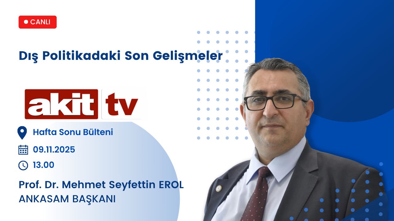 Yazar: ANKASAM AdminTarih:09/11/2025Paylaş:TwitterFacebookLinkedinReddItWhatsAppTelegramEmailYazdırCopy URL ETKİNLİKLERDuyurularANKASAM Başkanı Prof. Dr. Mehmet Seyfettin Erol Akit TV’de! Benzer İçerikler ANKASAM BAKIŞTürk-Amerikan İlişkilerinde Gelecek Arayışları ve “TRÇ İttifakı” HABERLERBerdimuhamedov Bakü’de: Azerbaycan ve Türkmenistan önemli konularda diyaloğu hızlandırıyor AVRASYAKremlin Sözcüsü: “Rusya, Ermenistan’la tüm alanlarda ilişkileri geliştirmeye ilgi duyuyor” AVRUPAAB, Suriye’ye yönelik ekonomik yaptırımları kaldırma kararı aldı ASYA-PASİFİKTayland ve Endonezya, İlişkilerini Stratejik Ortaklık Düzeyine YükselttiBu yazı şu dillerde de mevcuttur: English Русский📆 09.11.2025⏰ 13.00📍 Akit TVANKASAM AdminÖnceki İçerikANKASAM Başkanı Prof. Dr. Mehmet Seyfettin EROL TRT Türkiye’nin Sesi Radyosu’nda!Sonraki İçerikANKASAM Başkanı Prof. Dr. Mehmet Seyfettin EROL TRT Türkiye’nin Sesi Radyosu’nda!