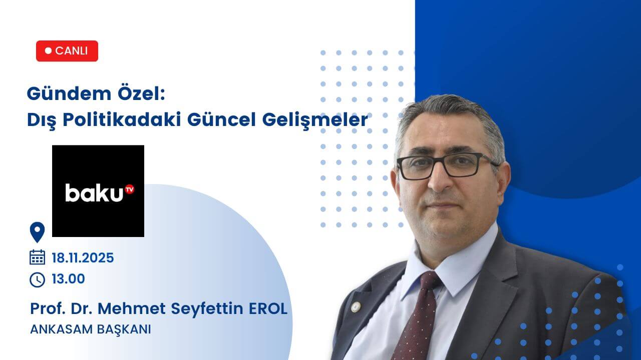 Yazar: ANKASAM AdminTarih:17/11/2025Paylaş:TwitterFacebookLinkedinReddItWhatsAppTelegramEmailYazdırCopy URL DuyurularANKASAM Başkanı Prof. Dr. Mehmet Seyfettin EROL Baku TV’de! Benzer İçerikler ANKASAM BAKIŞTürk-Amerikan İlişkilerinde Gelecek Arayışları ve “TRÇ İttifakı” HABERLERBerdimuhamedov Bakü’de: Azerbaycan ve Türkmenistan önemli konularda diyaloğu hızlandırıyor AVRASYAKremlin Sözcüsü: “Rusya, Ermenistan’la tüm alanlarda ilişkileri geliştirmeye ilgi duyuyor” AVRUPAAB, Suriye’ye yönelik ekonomik yaptırımları kaldırma kararı aldı ASYA-PASİFİKTayland ve Endonezya, İlişkilerini Stratejik Ortaklık Düzeyine YükselttiBu yazı şu dillerde de mevcuttur: English Русский🗓️ 18.11.2025⏰ 13.00📍 Baku TV📻 Aktual GündəmANKASAM AdminÖnceki İçerikANKASAM Başkanı Prof. Dr. Mehmet Seyfettin EROL TRT Ankara Radyosu’nda!