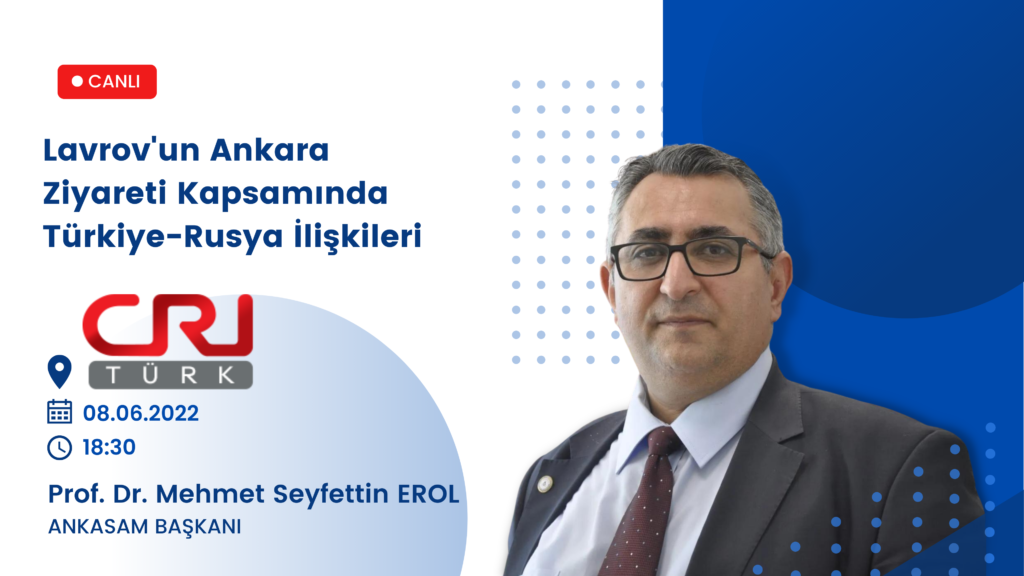 Tarih:08/06/2022Paylaş:TwitterFacebookLinkedinReddItWhatsAppTelegramEmailYazdırCopy URL DuyurularANKASAM Başkanı Prof. Dr. Mehmet Seyfettin Erol, CRI Türk FM’deÖnerilenlerProf. Dr. Mehmet Seyfettin EROL08.06.202218:30CRI Türk FM, “Manşet”Lavrov’un Ankara Ziyareti Kapsamında Türkiye-Rusya İlişkileriDinlemek için tıklayınızÖnceki İçerikANKASAM Başkan Başdanışmanı Emekli Büyükelçi Aydın Nurhan, TRT Arabi’deSonraki İçerikANKASAM Başkan Başdanışmanı Emekli Büyükelçi Aydın Nurhan, A News’te