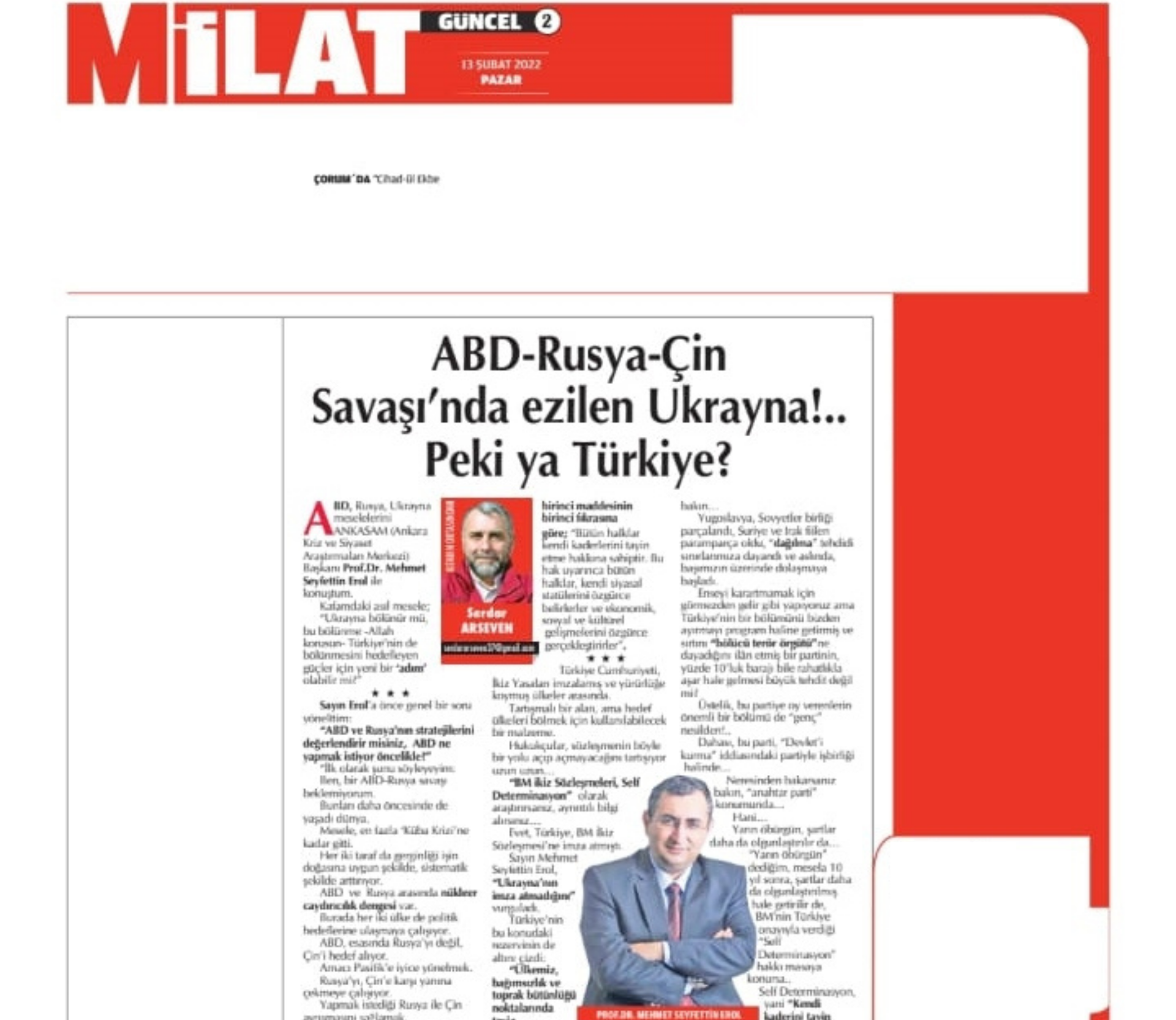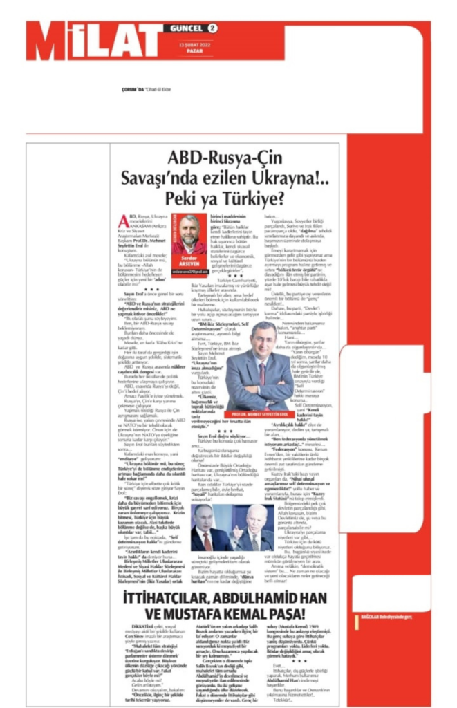 ANKASAM Başkanı Prof. Dr. Mehmet Seyfettin Erol Rusya-Ukrayna Krizi’ni Milat Gazetesi’ne Değerlendirdi