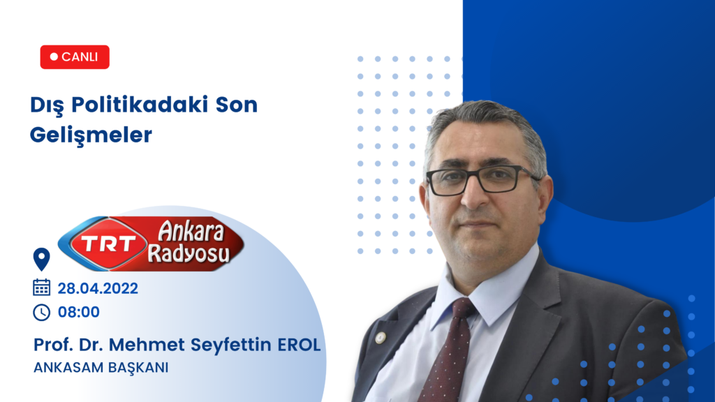 Tarih:27/04/2022Paylaş:TwitterFacebookLinkedinReddItWhatsAppTelegramEmailYazdırCopy URL DuyurularANKASAM Başkanı Prof. Dr. Mehmet Seyfettin Erol, TRT Ankara Radyosu’ndaÖnerilenlerProf. Dr. Mehmet Seyfettin Erol28.04.202208:00TRT Ankara Radyosu, “Gündem”Dış Politikadaki Son GelişmelerDinlemek için tıklayınızÖnceki İçerikANKASAM Başkanı Prof. Dr. Mehmet Seyfettin Erol’un Rusya-Ukrayna Savaşı’na Yönelik The Epoch Times’a Yaptığı Değerlendirme, NTD Vietnam’da YayınlandıSonraki İçerikANKASAM’ın Düzenlediği Kazakistan-Türkiye İlişkileri Semineri Canlı Gaste’de