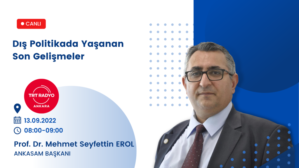 Tarih:12/09/2022Paylaş:TwitterFacebookLinkedinReddItWhatsAppTelegramEmailYazdırCopy URL DuyurularANKASAM Başkanı Prof. Dr. Mehmet Seyfettin Erol TRT Ankara Radyosu’ndaÖnerilenlerProf. Dr. Mehmet Seyfettin Erol13.09.202208:00-09:00TRT Ankara Radyosu, “Gündem”Dış Politikada Yaşanan Son GelişmelerDinlemek için tıklayınızÖnceki İçerikANKASAM Uluslararası İlişkiler Danışmanı Dr. Kadir Ertaç Çelik, Bengütürk TV’deSonraki İçerikANKASAM Başkanı Prof. Dr. Mehmet Seyfettin Erol: Özbekistan’ın ŞİO Başkanlığı ve Girişimleri, Örgütün İtibarını ve Statüsünü Güçlendirmeye Hizmet Etti