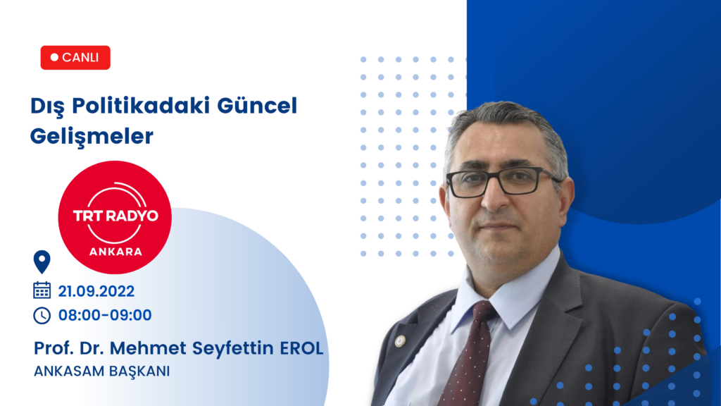 Tarih:20/09/2022Paylaş:TwitterFacebookLinkedinReddItWhatsAppTelegramEmailYazdırCopy URL DuyurularANKASAM Başkanı Prof. Dr. Mehmet Seyfettin Erol TRT Ankara Radyosu’ndaÖnerilenlerProf. Dr. Mehmet Seyfettin Erol21.09.202208:00-09:00TRT Ankara Radyosu, “Gündem”Dış Politikadaki Güncel GelişmelerDinlemek için tıklayınızÖnceki İçerikANKASAM Başkan Başdanışmanı Emekli Büyükelçi Aydın Nurhan TRT Arabi’deSonraki İçerikANKASAM Başkanı Prof. Dr. Mehmet Seyfettin Erol: ŞİÖ, ‘Batı’nın Antitezi’