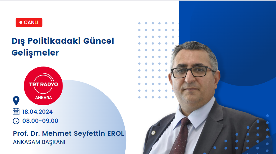 Yazar: ANKASAM AdminTarih:17/04/2024Paylaş:TwitterFacebookLinkedinReddItWhatsAppTelegramEmailYazdırCopy URL ETKİNLİKLERDuyurularANKASAM Başkanı Prof. Dr. Mehmet Seyfettin EROL, TRT Ankara Radyosu’nda! Benzer İçerikler ANKASAM BAKIŞTürk-Amerikan İlişkilerinde Gelecek Arayışları ve “TRÇ İttifakı” HABERLERBerdimuhamedov Bakü’de: Azerbaycan ve Türkmenistan önemli konularda diyaloğu hızlandırıyor AVRASYAKremlin Sözcüsü: “Rusya, Ermenistan’la tüm alanlarda ilişkileri geliştirmeye ilgi duyuyor” AVRUPAAB, Suriye’ye yönelik ekonomik yaptırımları kaldırma kararı aldı ASYA-PASİFİKTayland ve Endonezya, İlişkilerini Stratejik Ortaklık Düzeyine YükselttiBu yazı şu dillerde de mevcuttur: English Русский📅 18.04.2024⏰ 08.00-09.00📍 TRT Ankara RadyosuANKASAM AdminÖnceki İçerikANKASAM Başkan Başdanışmanı Emekli Büyükelçi Aydın NURHAN, A Haber’de!Sonraki İçerikANKASAM Başkanı Prof. Dr. Mehmet Seyfettin EROL, TRT Ankara Radyosu’nda!