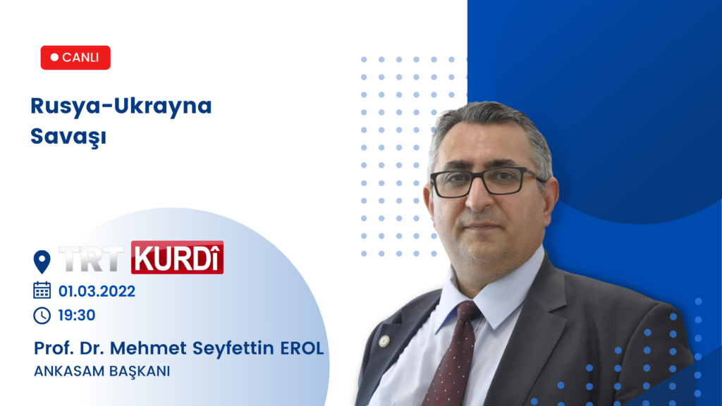 Tarih:01/03/2022Paylaş:TwitterFacebookLinkedinReddItWhatsAppTelegramEmailYazdırCopy URL DuyurularANKASAM Başkanı Prof. Dr. Mehmet Seyfettin EROL, TRT Kurdi’deÖnerilenler Prof. Dr. Mehmet Seyfettin EROL02.03.202218:00-19:00TRT KurdiRusya-Ukrayna SavaşıÖnceki İçerikANKASAM Başkanı Prof. Dr. Mehmet Seyfettin Erol, Rusya’nın Ukrayna Harekatı’nın Suriye’ye Yansımalarını Al Arabiya’ya DeğerlendirdiSonraki İçerikANKASAM Başkanı Prof. Dr. Mehmet Seyfettin EROL, TRT Haber’de