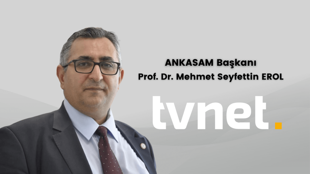 Tarih: 21/09/2021 Paylaş: TwitterFacebookLinkedinReddItWhatsAppTelegramEmailYazdırCopy URL Duyurular ANKASAM Başkanı Prof. Dr. Mehmet Seyfettin EROL TVNET’te Önerilenler Prof. Dr. Mehmet Seyfettin EROL22.09.2021 15:00 TV NET,”Haber Merkezi” Cumhurbaşkanı Erdoğan’ın ABD Temasları İzlemek için buraya tıklayınız Önceki İçerikANKASAM Uluslararası İlişkiler Uzmanı Dr. Doğacan BAŞARAN, ON4 TV’deSonraki İçerikANKASAM Başkanı Prof. Dr. Mehmet Seyfettin EROL BBN TÜRK TV’de