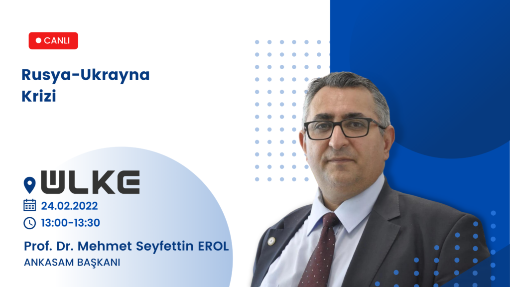 Tarih:24/02/2022Paylaş:TwitterFacebookLinkedinReddItWhatsAppTelegramEmailYazdırCopy URL DuyurularANKASAM Başkanı Prof. Dr. Mehmet Seyfettin EROL, Ülke TV’deÖnerilenler Prof. Dr. Mehmet Seyfettin EROL24.02.202213:00-13:30Ülke TV, “Öğle Ajansı”Rusya-Ukrayna Kriziİzlemek için buraya tıklayınızÖnceki İçerikANKASAM Başkanı Prof. Dr. Mehmet Seyfettin EROL, A Haber’deSonraki İçerikANKASAM Başkanı Prof. Dr. Mehmet Seyfettin EROL, TVNET’te
