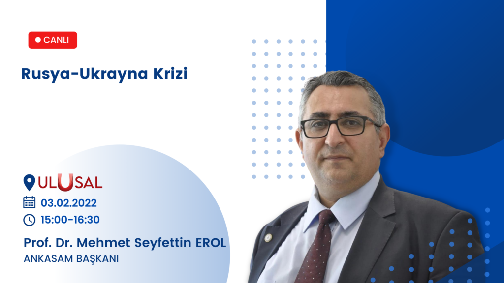 Tarih:03/02/2022Paylaş:TwitterFacebookLinkedinReddItWhatsAppTelegramEmailYazdırCopy URL DuyurularANKASAM Başkanı Prof. Dr. Mehmet Seyfettin EROL, Ulusal Kanal’daÖnerilenler Prof. Dr. Mehmet Seyfettin EROL03.02.202215:00-16:30Ulusal Kanal“Günlük”Rusya-Ukrayna Kriziİzlemek için buraya tıklayınızÖnceki İçerikANKASAM Başkanı Prof. Dr. Mehmet Seyfettin EROL, TRT Haber’deSonraki İçerikANKASAM Başkanı Prof. Dr. Mehmet Seyfettin EROL, A Haber’de