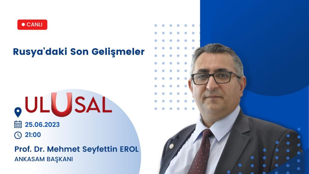 Tarih:25/06/2023Paylaş:TwitterFacebookLinkedinReddItWhatsAppTelegramEmailYazdırCopy URL DuyurularANKASAM Başkanı Prof. Dr. Mehmet Seyfettin Erol Ulusal Kanal’daÖnerilenler Prof. Dr. Mehmet Seyfettin EROL25.06.202321:00Ulusal Kanal, “Özel Yayın”Rusya’daki Son Gelişmelerİzlemek için buraya tıklayınızÖnceki İçerikANKASAM Başdanışmanı Prof. Dr. Cem Karadeli, A Haber’deSonraki İçerikANKASAM Başkanı Prof. Dr. Mehmet Seyfettin Erol TRT Ankara Radyosu’nda