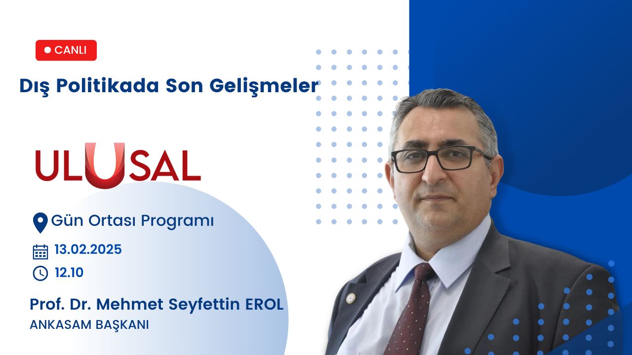 Yazar: ANKASAM AdminTarih:13/02/2025Paylaş:TwitterFacebookLinkedinReddItWhatsAppTelegramEmailYazdırCopy URL ETKİNLİKLERDuyurularANKASAM Başkanı Prof. Dr. Mehmet Seyfettin Erol, Ulusal Kanal’da! Benzer İçerikler ANKASAM BAKIŞTürk-Amerikan İlişkilerinde Gelecek Arayışları ve “TRÇ İttifakı” HABERLERBerdimuhamedov Bakü’de: Azerbaycan ve Türkmenistan önemli konularda diyaloğu hızlandırıyor AVRASYAKremlin Sözcüsü: “Rusya, Ermenistan’la tüm alanlarda ilişkileri geliştirmeye ilgi duyuyor” AVRUPAAB, Suriye’ye yönelik ekonomik yaptırımları kaldırma kararı aldı ASYA-PASİFİKTayland ve Endonezya, İlişkilerini Stratejik Ortaklık Düzeyine YükselttiBu yazı şu dillerde de mevcuttur: English Русский📅 13.02.2025⏰ 12.10📍 Ulusal Kanal TVANKASAM AdminÖnceki İçerikANKASAM Başkanı Prof. Dr. Mehmet Seyfettin Erol, TRT Türkiye’nin Sesi Radyosu’nda!Sonraki İçerikANKASAM Başkanı Prof. Dr. Mehmet Seyfettin Erol, Radyo Sputnik’te!