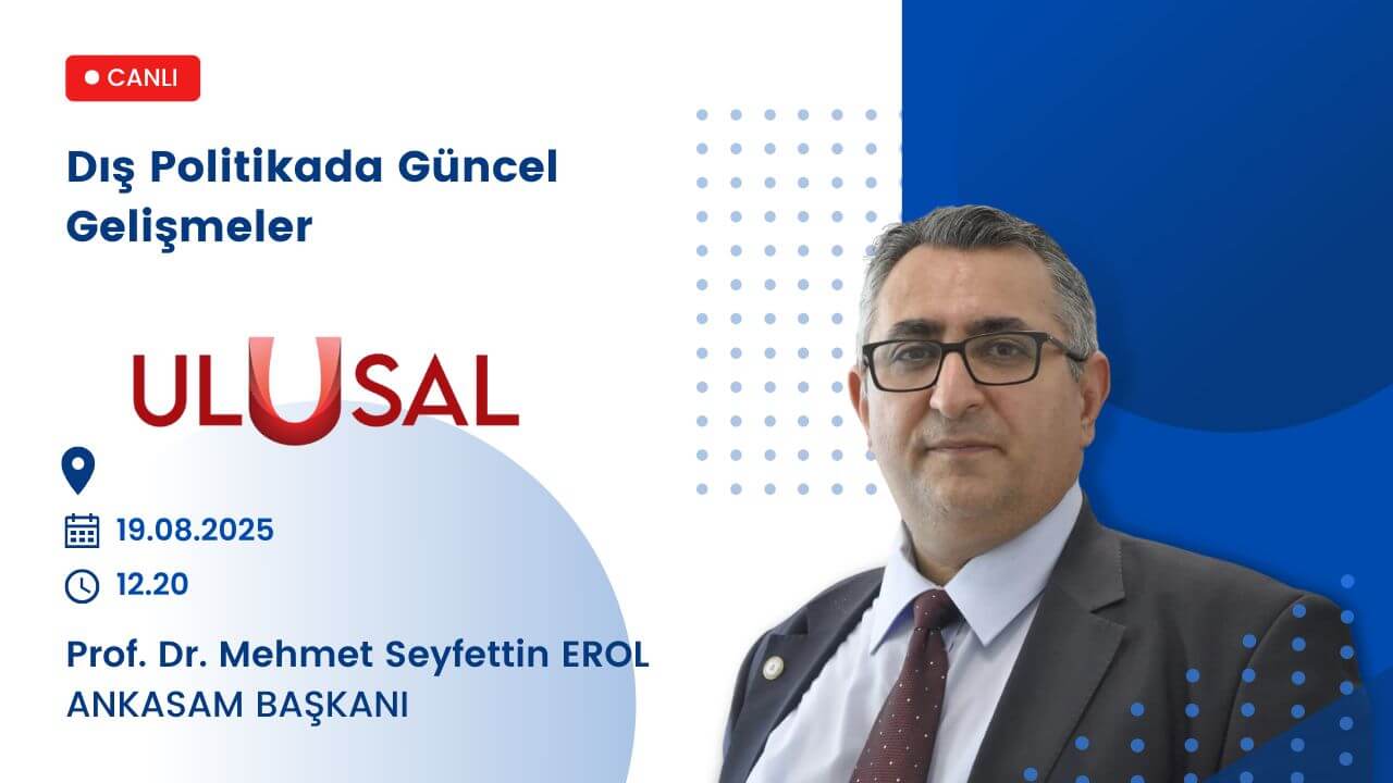 Yazar: ANKASAM AdminTarih:18/08/2025Paylaş:TwitterFacebookLinkedinReddItWhatsAppTelegramEmailYazdırCopy URL DuyurularANKASAM Başkanı Prof. Dr. Mehmet Seyfettin Erol Ulusal Kanal’da! Benzer İçerikler ANKASAM BAKIŞTürk-Amerikan İlişkilerinde Gelecek Arayışları ve “TRÇ İttifakı” HABERLERBerdimuhamedov Bakü’de: Azerbaycan ve Türkmenistan önemli konularda diyaloğu hızlandırıyor AVRASYAKremlin Sözcüsü: “Rusya, Ermenistan’la tüm alanlarda ilişkileri geliştirmeye ilgi duyuyor” AVRUPAAB, Suriye’ye yönelik ekonomik yaptırımları kaldırma kararı aldı ASYA-PASİFİKTayland ve Endonezya, İlişkilerini Stratejik Ortaklık Düzeyine YükselttiBu yazı şu dillerde de mevcuttur: English Русский🗓️ 19.08.2025⏰ 12.20📍 Ulusal Kanal📺 Gündemin NabzıANKASAM AdminÖnceki İçerikANKASAM Başkanı Prof. Dr. Mehmet Seyfettin Erol AZTV’de Trump ve Putin Arasındaki Alaska Görüşmelerini DeğerlendirdiSonraki İçerikANKASAM Başkanı Prof. Dr. Mehmet Seyfettin Erol Oxu.Az’de Alaska Zirvesi ve Sürecini Değerlendirdi