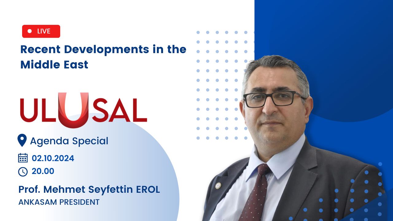 Author: ANKASAM AdminDate:01/10/2024Share:TwitterFacebookLinkedinReddItWhatsAppTelegramEmailPrintCopy URL EVENTSAnnouncementsANKASAM President Prof. Dr. Mehmet Seyfettin Erol is on the Ulusal Kanal! Similar Posts ANKASAM OUTLOOK“The Forgotten Negotiation Table” in the Russia-Ukraine War: Will the Table in Istanbul Be Set Again? GLOBALPakistani PM: Trump Prevented War in Asia ANKASAM OUTLOOKFuture Prospects in Turkish-American Relations and the “TRC Alliance” CENTRAL ASIABerdymukhamedov in Baku: Azerbaijan and Turkmenistan intensify dialogue on key issues EURASIARussia interested in developing ties with Armenia in all areas — Kremlin spokesmanThis post is also available in: Türkçe Русский📅 02.10.2024⏰ 20.00📍 Ulusal Kanal TVANKASAM AdminPrevious articleANKASAM President Prof. Dr. Mehmet Seyfettin EROL is on TRT Voice of Türkiye Radio!Next articleCURRENT ISSUES IN TURKISH FOREIGN POLICY: “In the 21st Century, Dilemmas and Expansions in Turkish Foreign Policy in the Light of International Relations”