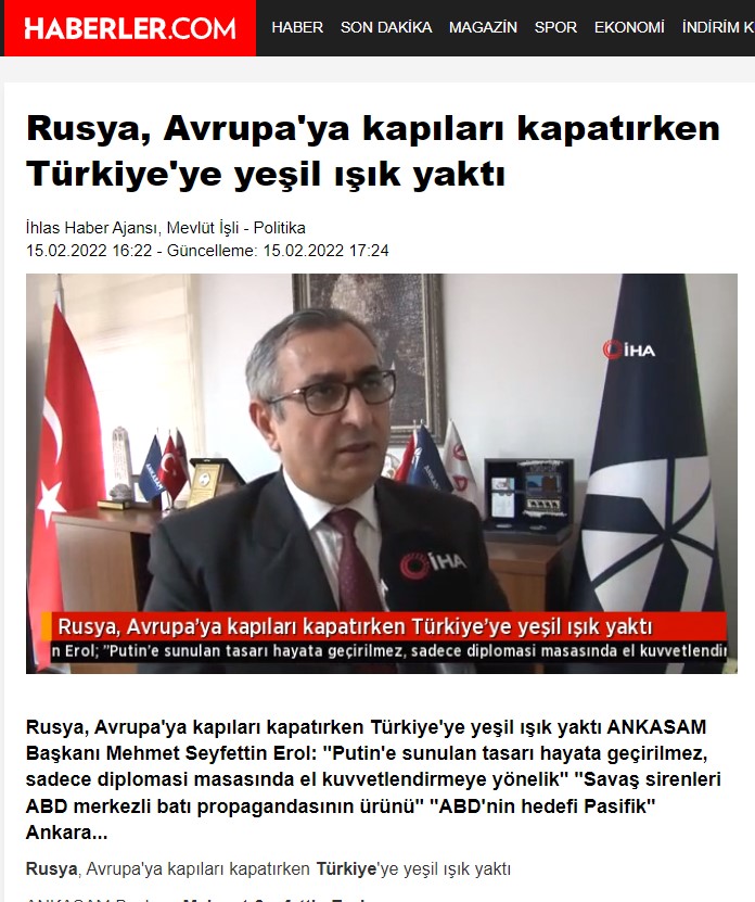 Ankara Kriz ve Siyaset Araştırmaları Merkezi Başkanı Prof. Dr. Mehmet Seyfettin Erol’un, Rusya-Ukrayna sınırında devam eden gerilime yönelik değerlendirmeleri Haberler.com’da yayınlandı.