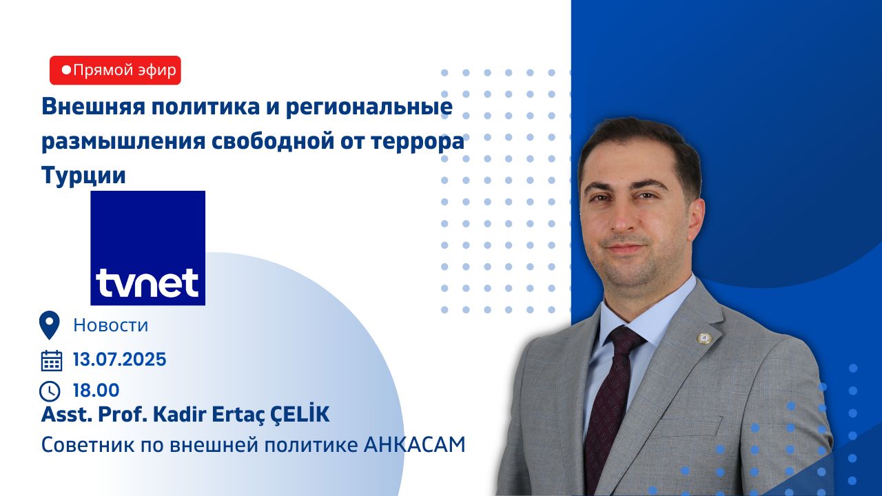 АВТОР: ANKASAM AdminДАТА:13/07/2025ПОДЕЛИТЬСЯ:TwitterFacebookLinkedinReddItWhatsAppTelegramEmailРаспечататьCopy URL СОБЫТИЯПРЕССАСоветник по внешней политике ANKASAM д-р асс. Кадир Эртач Челик в эфире TVNET! Похожее ВЗГЛЯД АНКАСАМПоиски будущего в Американо-Турецких отношенияхи «Альянс ТРК» ВЗГЛЯД АНКАСАМПоиски будущего в Американо-Турецких отношенияхи «Альянс ТРК» СРЕДНЯЯ АЗИЯÇin, insansı robot inovasyonu ve ticarileştirme konusunda daha fazla ilerleme kaydediyor НОВОСТИБердымухамедов в Баку: Азербайджан и Туркменистан активизируют диалог по ключевым направлениям ЕВРАЗИЯРоссия заинтересована в развитии связей с Арменией по всем направлениям — пресс-секретарь КремляЭта статья также доступна на этих языках: Türkçe English📆 13.07.2025⏰ 18.00📍 TVNETANKASAM AdminПредыдущая статьяКонсультант по международным отношениям АНКAСАМ, доцент Кадир Эртач Челик на TRT Араби!Следующая статьяПрезидент АНКAСАМ профессор доктор Мехмет Сейфеттин Эрол на радио TRT «Голос Турции»!