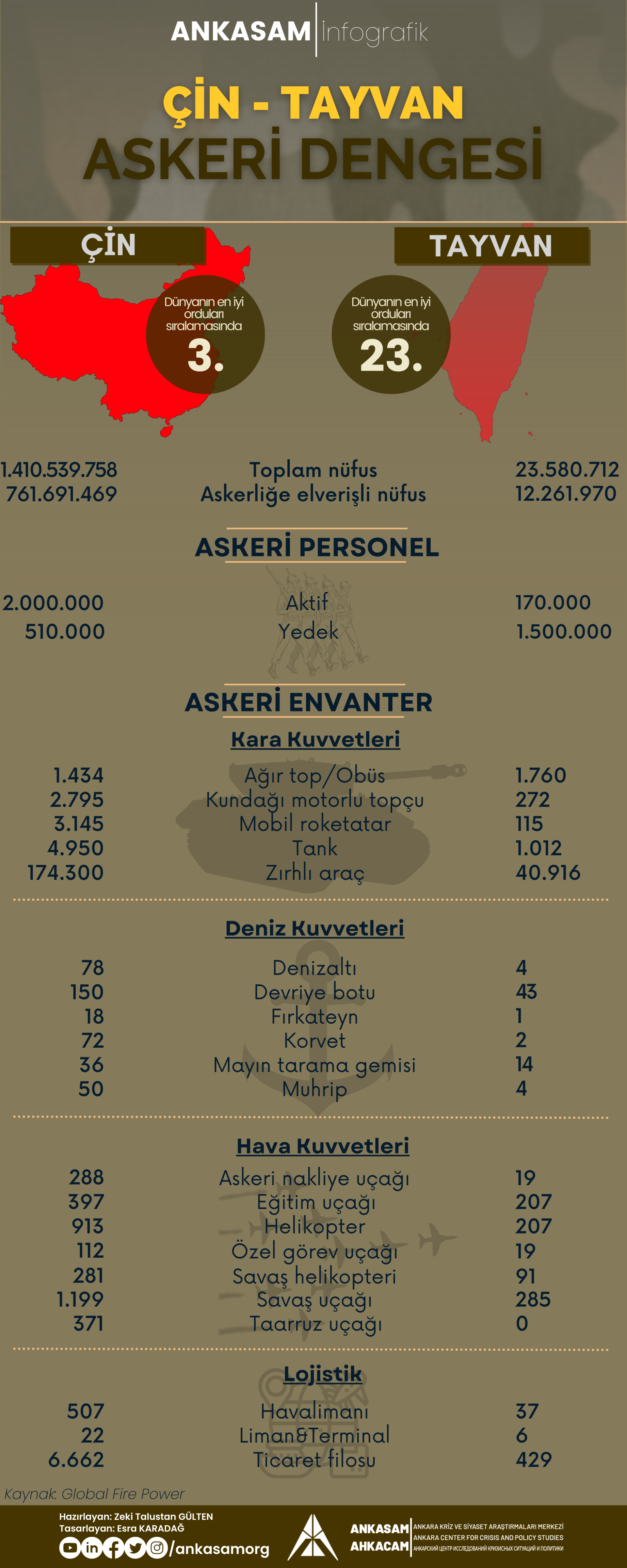 ANKASAM İnfografik: Çin-Tayvan Askeri Dengesi
