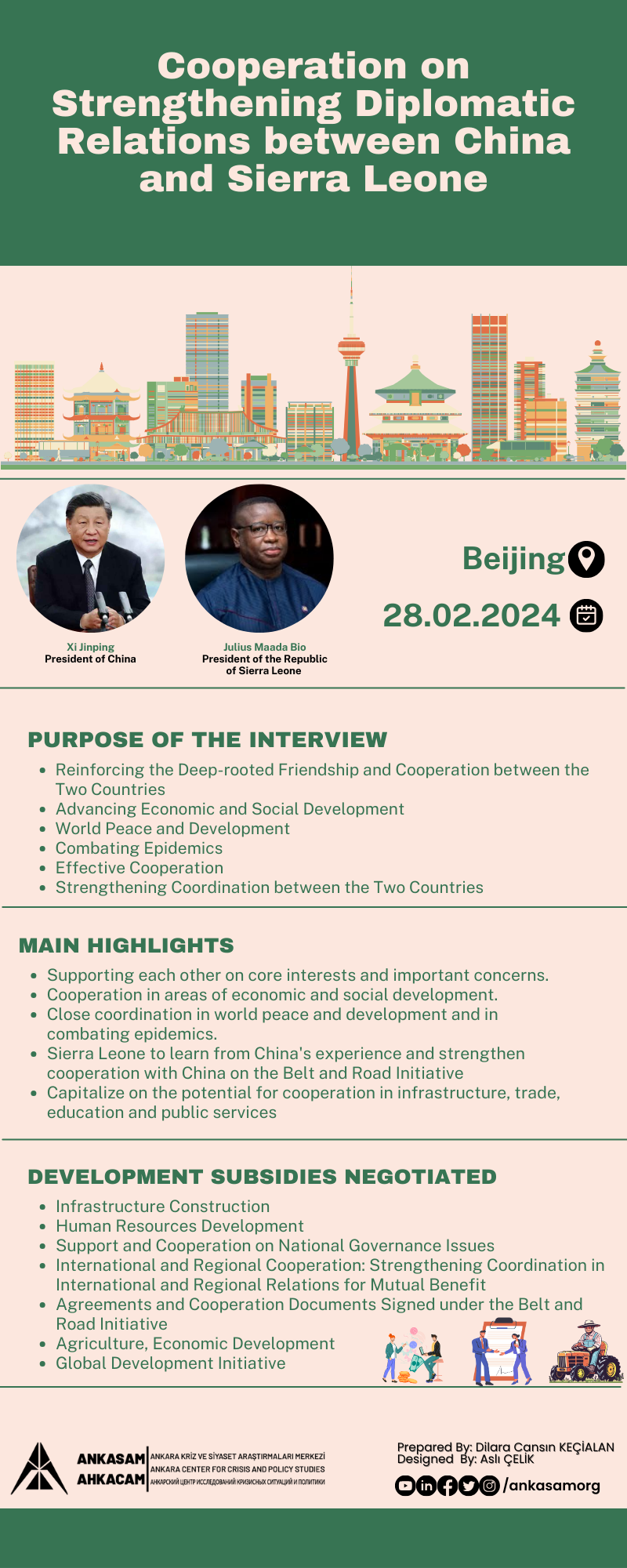 Author: ANKASAM AdminDate:13/03/2024Share:TwitterFacebookLinkedinReddItWhatsAppTelegramEmailPrintCopy URL MEDIAINFOGRAPHICSANKASAM INFOGRAPHIC: Cooperation on Strengthening Diplomatic Relations between China and Sierra Leone Similar PostsThis post is also available in: Türkçe РусскийTagsİnfografikInfographicANKASAM AdminPrevious articleANKASAM INFOGRAPHIC: KAZAKH GOVERNMENT APPROVES FIVE-YEAR ASTANA DEVELOPMENT PLANNext articleANKASAM INFOGRAPHIC: AGREEMENT OF STRATEGIC AND COMPREHENSIVE PARTNERSHIP BETWEEN THE EGYPT ARAB REPUBLIC AND THE EUROPEAN UNION