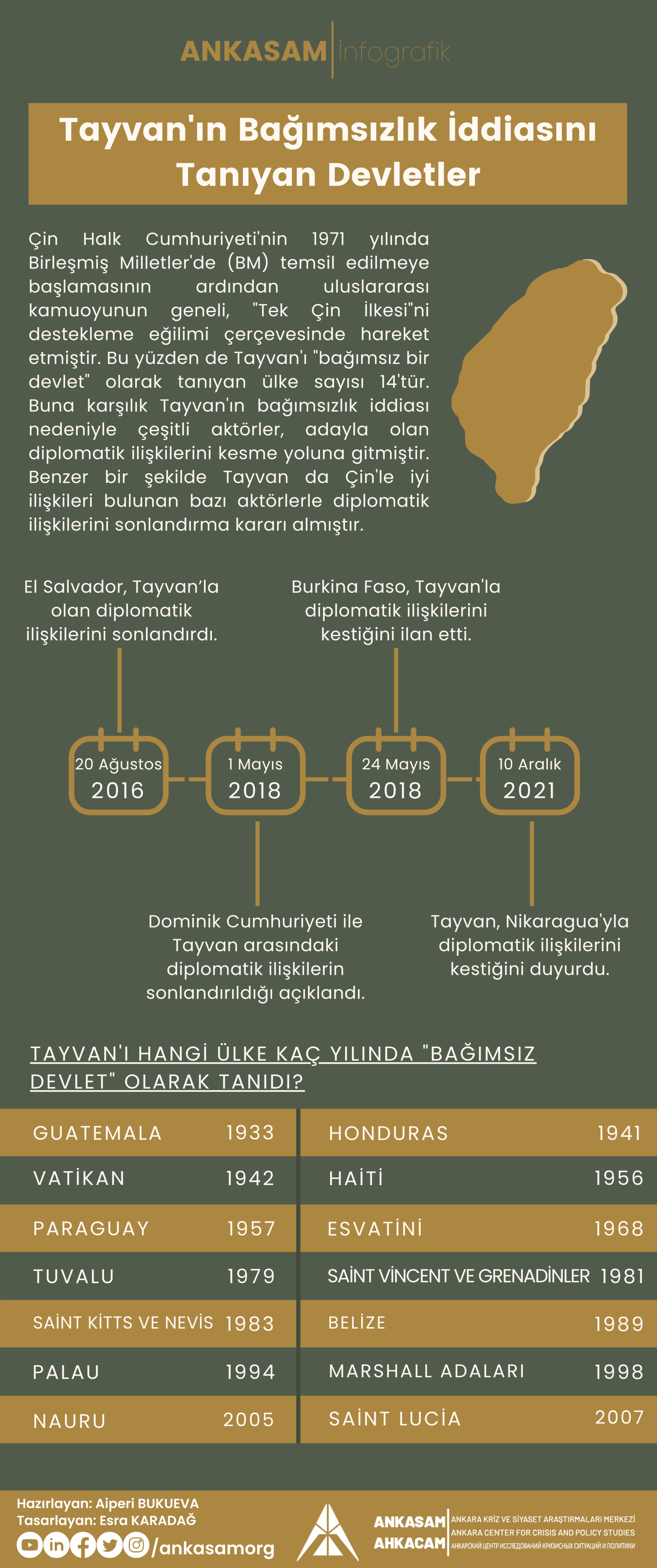 ANKASAM İnfografik: Tayvan’ın Bağımsızlık İddiasını Tanıyan Devletler