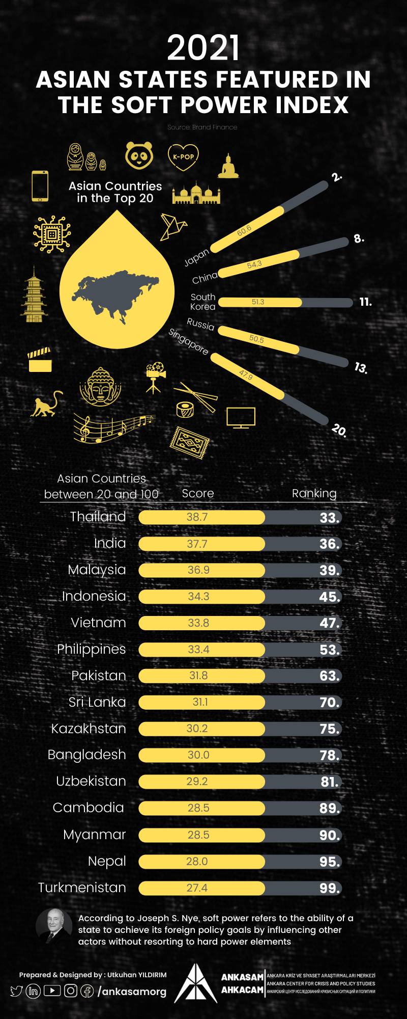 Date:10/08/2021Share:TwitterFacebookLinkedinReddItWhatsAppTelegramEmailPrintCopy URL INFOGRAPHICSANKASAM Infographic: Asian States Featured in the Soft Power IndexRecommendedPrevious articleANKASAM Infographic: Turkey-Tajikistan RelationsNext articleANKASAM Infographic: Energy Problems ın India