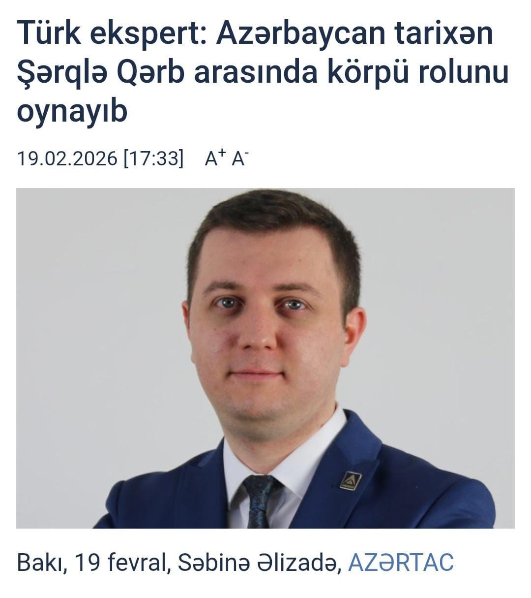Ankara Kriz ve Siyaset Araştırmaları Merkezi (ANKASAM) Kıdemli Araştırmacısı Cenk Tamer, Azerbaycan Devlet Enformasyon Ajansı (AZERTAC)’a verdiği görüşte, Azerbaycan’ın tarihsel olarak Doğu ile Batı arasında köprü işlevi üstlendiğini ve bu rolün günümüz jeopolitik koşullarında daha da güçlendiğini belirtmektedir. Tamer’e göre ülkenin stratejik coğrafi konumu, yalnızca transit avantajı değil; enerji, ticaret ve diplomasi alanlarında çok boyutlu bir kapasite üretmektedir.