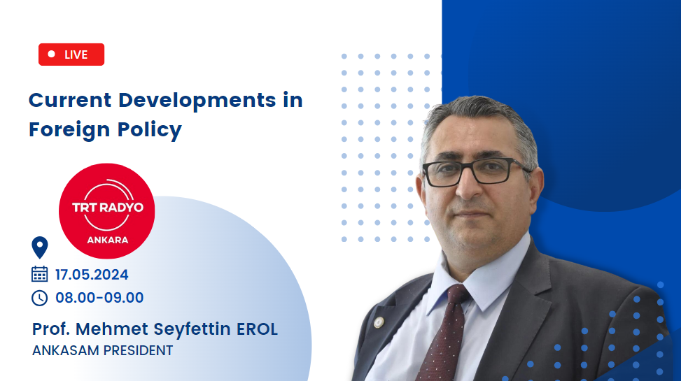 Author: ANKASAM AdminDate:16/05/2024Share:TwitterFacebookLinkedinReddItWhatsAppTelegramEmailPrintCopy URL EVENTSAnnouncementsANKASAM President Prof. Dr. Mehmet Seyfettin EROL is on TRT Ankara Radio! Similar Posts GLOBALPakistani PM: Trump Prevented War in Asia ANKASAM OUTLOOKFuture Prospects in Turkish-American Relations and the “TRC Alliance” CENTRAL ASIABerdymukhamedov in Baku: Azerbaijan and Turkmenistan intensify dialogue on key issues EURASIARussia interested in developing ties with Armenia in all areas — Kremlin spokesman EUROPEEU Decides to Lift Economic Sanctions on SyriaThis post is also available in: Türkçe Русский📅 17.05.2024⏰ 08.00-09.00📍 TRT Ankara RadioANKASAM AdminPrevious articleANKASAM President Prof. Dr. Mehmet Seyfettin EROL is on TRT Voice of Türkiye Radio!Next articleANKASAM International Relations Advisor Dr. Kadir Ertaç ÇELİK is on TVNet!