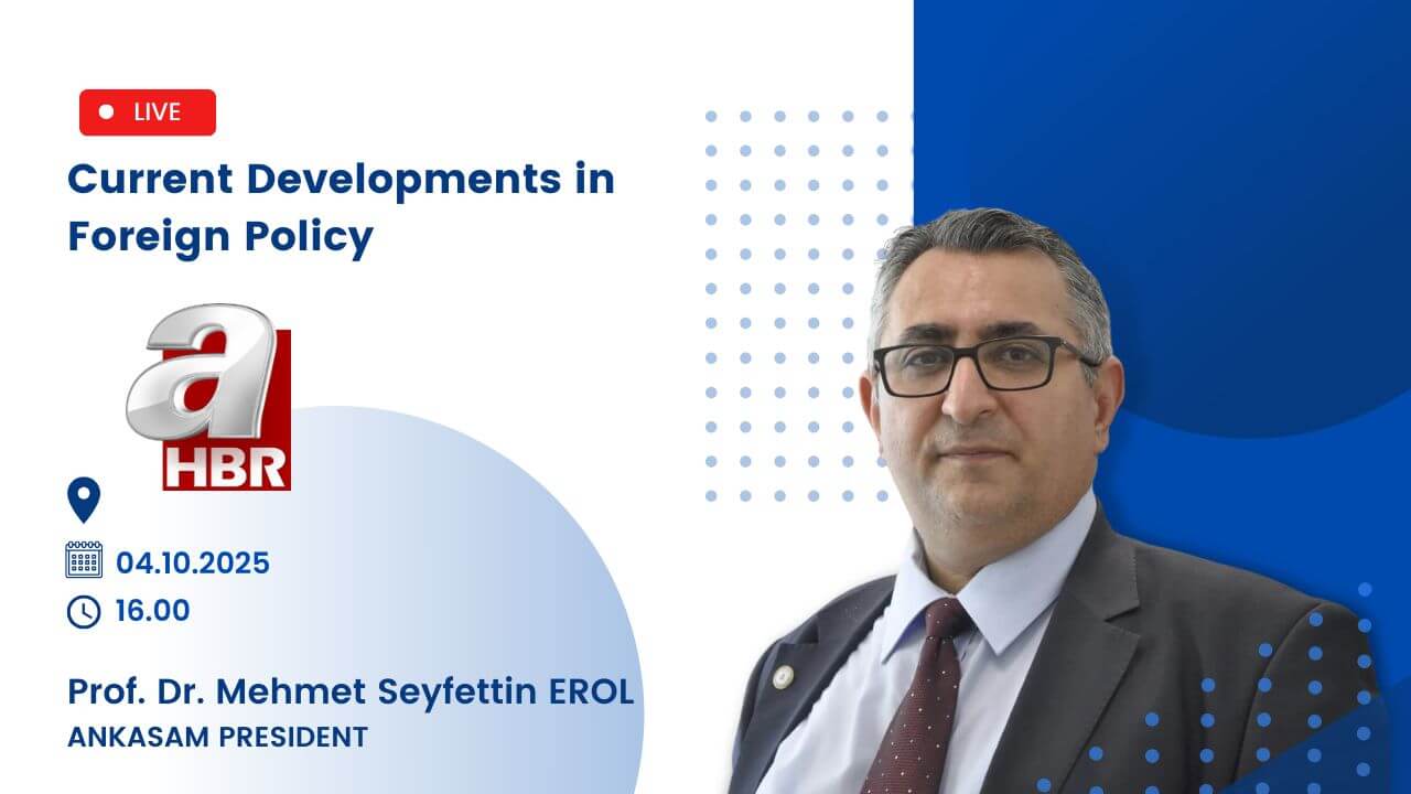 Author: ANKASAM AdminDate:04/10/2025Share:TwitterFacebookLinkedinReddItWhatsAppTelegramEmailPrintCopy URL AnnouncementsANKASAM President Prof. Dr. Mehmet Seyfettin EROL on A Haber! Similar Posts GLOBALPakistani PM: Trump Prevented War in Asia ANKASAM OUTLOOKFuture Prospects in Turkish-American Relations and the “TRC Alliance” CENTRAL ASIABerdymukhamedov in Baku: Azerbaijan and Turkmenistan intensify dialogue on key issues EURASIARussia interested in developing ties with Armenia in all areas — Kremlin spokesman EUROPEEU Decides to Lift Economic Sanctions on SyriaThis post is also available in: Türkçe Русский🗓️ 04.10.2025⏰ 16.00📍 A Haber📺 News BroadcastANKASAM AdminPrevious articleANKASAM President Prof. Dr. Mehmet Seyfettin EROL on TRT Voice of Turkey Radio!Next articleANKASAM President Prof. Dr. Mehmet Seyfettin EROL Assessed Azerbaijan’s Role in the Organization of Turkic States on AZTV