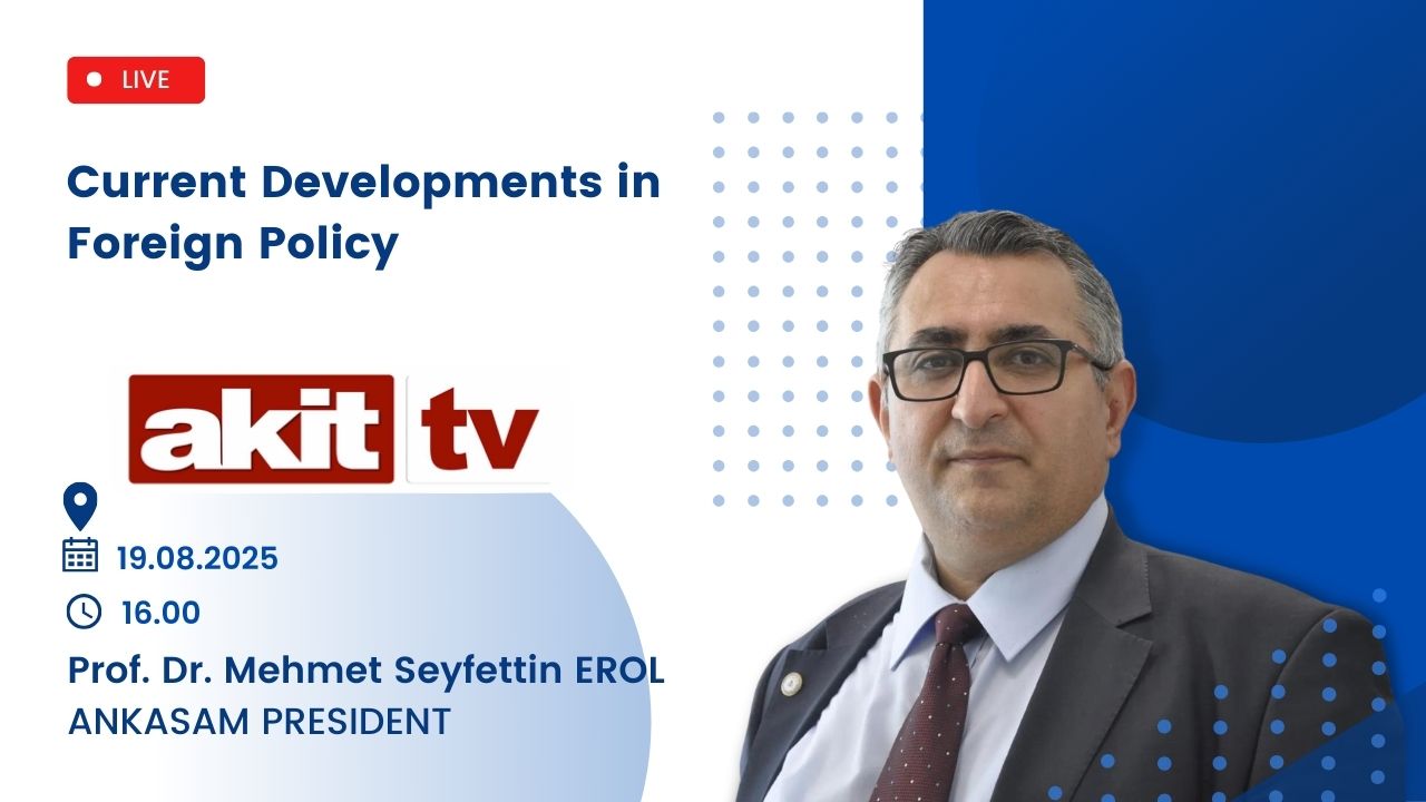 Author: ANKASAM AdminDate:18/08/2025Share:TwitterFacebookLinkedinReddItWhatsAppTelegramEmailPrintCopy URL AnnouncementsANKASAM President Prof. Dr. Mehmet Seyfettin Erol on Akit TV! Similar Posts GLOBALPakistani PM: Trump Prevented War in Asia ANKASAM OUTLOOKFuture Prospects in Turkish-American Relations and the “TRC Alliance” CENTRAL ASIABerdymukhamedov in Baku: Azerbaijan and Turkmenistan intensify dialogue on key issues EURASIARussia interested in developing ties with Armenia in all areas — Kremlin spokesman EUROPEEU Decides to Lift Economic Sanctions on SyriaThis post is also available in: Türkçe Русский🗓️ 19.08.2025⏰ 16.00📍 Akit TV📺 News 16ANKASAM AdminPrevious articleANKASAM President Prof. Dr. Mehmet Seyfettin Erol Evaluates the Alaska Summit and Process on Oxu.AzNext articleANKASAM President Prof. Dr. Mehmet Seyfettin Erol on TRT Ankara Radio!