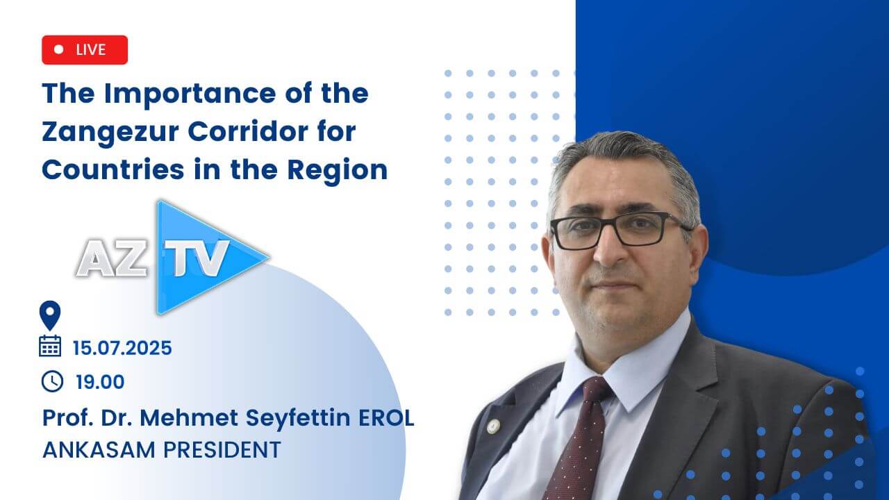 Author: ANKASAM AdminDate:15/07/2025Share:TwitterFacebookLinkedinReddItWhatsAppTelegramEmailPrintCopy URL AnnouncementsANKASAM President Prof. Dr. Mehmet Seyfettin Erol on AZTV! Similar Posts GLOBALPakistani PM: Trump Prevented War in Asia ANKASAM OUTLOOKFuture Prospects in Turkish-American Relations and the “TRC Alliance” CENTRAL ASIABerdymukhamedov in Baku: Azerbaijan and Turkmenistan intensify dialogue on key issues EURASIARussia interested in developing ties with Armenia in all areas — Kremlin spokesman EUROPEEU Decides to Lift Economic Sanctions on SyriaThis post is also available in: Türkçe Русский🗓️15.07.2025⏰ 19.00 (8:00 p.m. Baku time)📍 AZTV📺 NewsANKASAM AdminPrevious articleANKASAM President Prof. Dr. Mehmet Seyfettin Erol on TRT Ankara Radio!Next articleANKASAM President Prof. Dr. Mehmet Seyfettin Erol Assessed Turkey’s Libya Policy and Role in the Eastern Mediterranean in Milliyet Newspaper