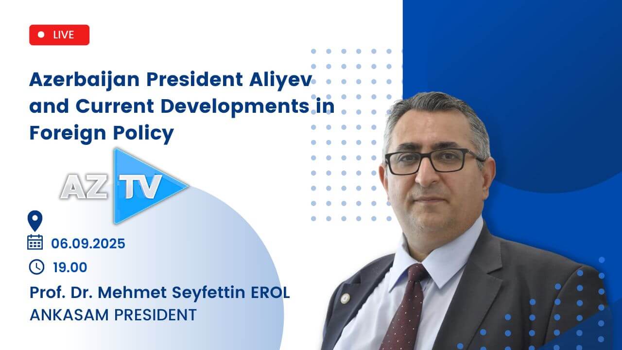 Author: ANKASAM AdminDate:06/09/2025Share:TwitterFacebookLinkedinReddItWhatsAppTelegramEmailPrintCopy URL AnnouncementsANKASAM President Prof. Dr. Mehmet Seyfettin Erol on AZTV! Similar Posts GLOBALPakistani PM: Trump Prevented War in Asia ANKASAM OUTLOOKFuture Prospects in Turkish-American Relations and the “TRC Alliance” CENTRAL ASIABerdymukhamedov in Baku: Azerbaijan and Turkmenistan intensify dialogue on key issues EURASIARussia interested in developing ties with Armenia in all areas — Kremlin spokesman EUROPEEU Decides to Lift Economic Sanctions on SyriaThis post is also available in: Türkçe Русский🗓️ 06.09.2025⏰ 19.00📍 AZTV📺 8:00 p.m. NewsANKASAM AdminPrevious articleANKASAM International Relations Advisor Dr. Kadir Ertaç Çelik on TV5!Next articleANKASAM President Prof. Dr. Mehmet Seyfettin Erol Assessed Azerbaijani President Aliyev and Current Developments in Foreign Policy on AZTV