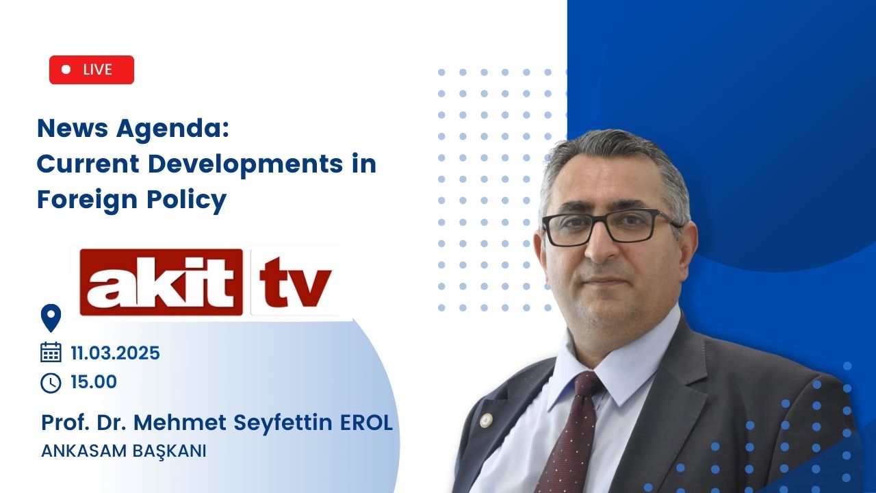 Author: ANKASAM AdminDate:11/03/2025Share:TwitterFacebookLinkedinReddItWhatsAppTelegramEmailPrintCopy URL AnnouncementsANKASAM President Prof. Mehmet Seyfettin Erol is on Akit TV! Similar Posts GLOBALPakistani PM: Trump Prevented War in Asia ANKASAM OUTLOOKFuture Prospects in Turkish-American Relations and the “TRC Alliance” CENTRAL ASIABerdymukhamedov in Baku: Azerbaijan and Turkmenistan intensify dialogue on key issues EURASIARussia interested in developing ties with Armenia in all areas — Kremlin spokesman EUROPEEU Decides to Lift Economic Sanctions on SyriaThis post is also available in: Türkçe Русский📆 11.03.2025⏰ 15.00📍 Akit TVANKASAM AdminPrevious articleANKASAM President Prof. Dr. Mehmet Seyfettin EROL is on TRT Voice of Türkiye Radio!Next articleANKASAM President Prof. Dr. Mehmet Seyfettin Erol is on TRT Ankara Radio!