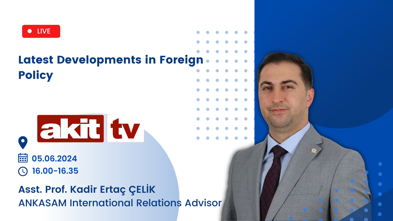 Author: ANKASAM AdminDate:05/06/2024Share:TwitterFacebookLinkedinReddItWhatsAppTelegramEmailPrintCopy URL EVENTSAnnouncementsANKASAM International Relations Consultant Dr. Kadir Ertaç ÇELİK on Akit TV! Similar Posts GLOBALPakistani PM: Trump Prevented War in Asia ANKASAM OUTLOOKFuture Prospects in Turkish-American Relations and the “TRC Alliance” CENTRAL ASIABerdymukhamedov in Baku: Azerbaijan and Turkmenistan intensify dialogue on key issues EURASIARussia interested in developing ties with Armenia in all areas — Kremlin spokesman EUROPEEU Decides to Lift Economic Sanctions on SyriaThis post is also available in: Türkçe Русский📅 05.06.2024⏰ 16.00-16.35📍 Akit TVANKASAM AdminPrevious articleANKASAM President Prof. Dr. Mehmet Seyfettin EROL is on TRT Ankara Radio!Next articleANKASAM President Prof. M. S. EROL’s assessment of Uzbekistan President Mr. Mirziyoyev’s visit to Turkey was published in Sabah Newspaper.