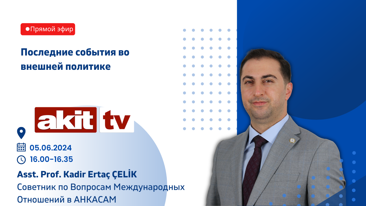 АВТОР: ANKASAM AdminДАТА:05/06/2024ПОДЕЛИТЬСЯ:TwitterFacebookLinkedinReddItWhatsAppTelegramEmailРаспечататьCopy URL СОБЫТИЯПРЕССАКонсультант по международным отношениям ANKASAM доктор Кадир Эртач Челик в эфире Akit TV! Похожее ВЗГЛЯД АНКАСАМПоиски будущего в Американо-Турецких отношенияхи «Альянс ТРК» ВЗГЛЯД АНКАСАМПоиски будущего в Американо-Турецких отношенияхи «Альянс ТРК» СРЕДНЯЯ АЗИЯÇin, insansı robot inovasyonu ve ticarileştirme konusunda daha fazla ilerleme kaydediyor НОВОСТИБердымухамедов в Баку: Азербайджан и Туркменистан активизируют диалог по ключевым направлениям ЕВРАЗИЯРоссия заинтересована в развитии связей с Арменией по всем направлениям — пресс-секретарь КремляЭта статья также доступна на этих языках: Türkçe English📅 05.06.2024⏰ 16.00-16.35📍 Akit TVANKASAM AdminПредыдущая статьяПрезидент ANKASAM проф. д-р Мехмет Сейфеттин ЭРОЛ в эфире радио TRT Анкара!Следующая статьяВ газете Sabah опубликована оценка, данная директором ANKASAM проф.д-р. М. С. Эролом в рамках визита президента Узбекистана г-на Мирзиёева в Турцию.