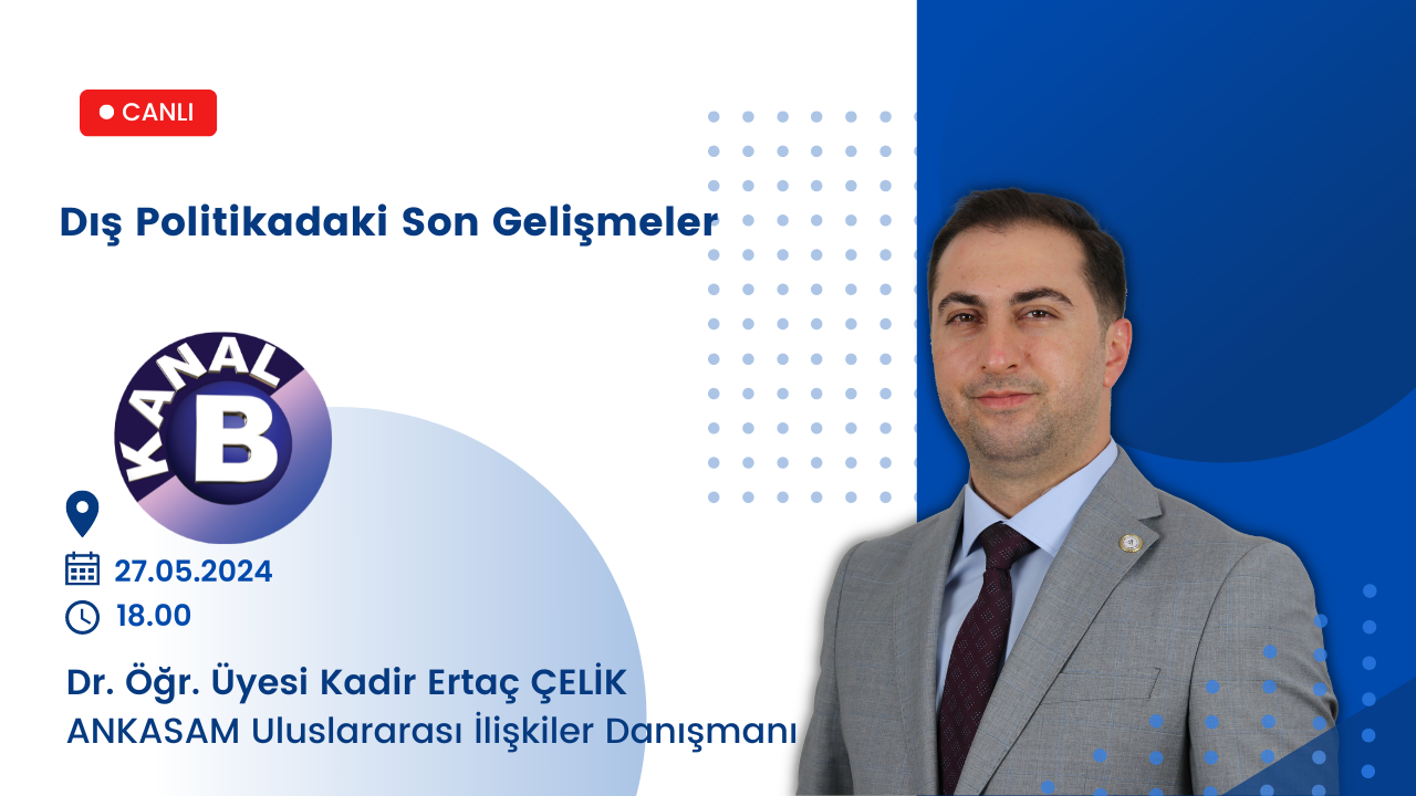 Yazar: ANKASAM AdminTarih:27/05/2024Paylaş:TwitterFacebookLinkedinReddItWhatsAppTelegramEmailYazdırCopy URL ETKİNLİKLERDuyurularANKASAM Uluslararası İlişkiler Danışmanı Dr. Kadir Ertaç ÇELİK Kanal B’de! Benzer İçerikler ANKASAM BAKIŞTürkiye-Özbekistan İlişkilerinde Stratejik Ortaklıktan Jeopolitik Eksen Oluşumuna 4+4 Mekanizması ANKASAM BAKIŞRusya-Ukrayna Savaşında “Unutulan Müzakere Masası”: İstanbul’da Masa Tekrar Kurulacak mı? ANKASAM BAKIŞTürk-Amerikan İlişkilerinde Gelecek Arayışları ve “TRÇ İttifakı” HABERLERBerdimuhamedov Bakü’de: Azerbaycan ve Türkmenistan önemli konularda diyaloğu hızlandırıyor AVRASYAKremlin Sözcüsü: “Rusya, Ermenistan’la tüm alanlarda ilişkileri geliştirmeye ilgi duyuyor”Bu yazı şu dillerde de mevcuttur: English Русский📅 27.05.2024⏰ 18.00📍 Kanal BANKASAM AdminÖnceki İçerikANKASAM Başkanı Prof. Dr. Mehmet Seyfettin EROL, TRT Türkiye’nin Sesi Radyosu’nda!Sonraki İçerikANKASAM Uluslararası İlişkiler Danışmanı Dr. Kadir Ertaç ÇELİK TVNet’te!