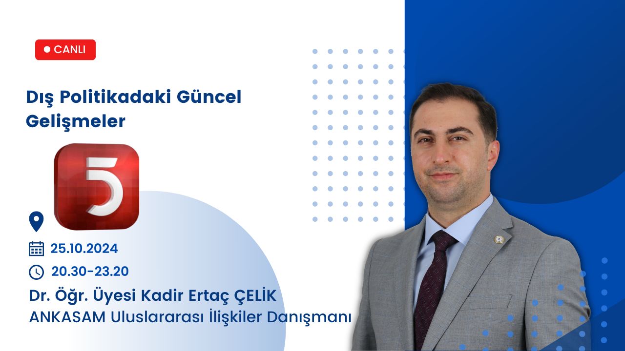 Yazar: ANKASAM AdminTarih:24/10/2024Paylaş:TwitterFacebookLinkedinReddItWhatsAppTelegramEmailYazdırCopy URL ETKİNLİKLERDuyurularANKASAM Uluslararası İlişkiler Danışmanı Dr. Kadir Ertaç ÇELİK, TV5’te! Benzer İçerikler ANKASAM BAKIŞTürk-Amerikan İlişkilerinde Gelecek Arayışları ve “TRÇ İttifakı” HABERLERBerdimuhamedov Bakü’de: Azerbaycan ve Türkmenistan önemli konularda diyaloğu hızlandırıyor AVRASYAKremlin Sözcüsü: “Rusya, Ermenistan’la tüm alanlarda ilişkileri geliştirmeye ilgi duyuyor” AVRUPAAB, Suriye’ye yönelik ekonomik yaptırımları kaldırma kararı aldı ASYA-PASİFİKTayland ve Endonezya, İlişkilerini Stratejik Ortaklık Düzeyine YükselttiBu yazı şu dillerde de mevcuttur: English Русский📆 25.10.2024⏰ 20.30-23.20📍 TV5ANKASAM AdminÖnceki İçerikANKASAM Uluslararası İlişkiler Danışmanı Dr. Kadir Ertaç ÇELİK, TV Net’te!Sonraki İçerikANKASAM Başkanı Prof. Dr. Mehmet Seyfettin Erol, TRT Türkiye’nin Sesi Radyosu’nda!