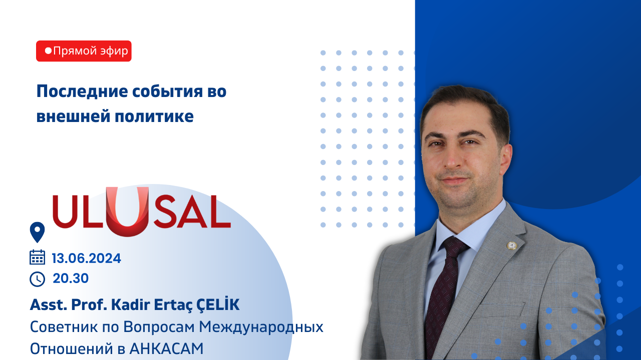 АВТОР: ANKASAM AdminДАТА:13/06/2024ПОДЕЛИТЬСЯ:TwitterFacebookLinkedinReddItWhatsAppTelegramEmailРаспечататьCopy URL СОБЫТИЯПРЕССАКонсультант по международным отношениям ANKASAM доктор Кадир Эртач Челик в эфире Ulusal Kanal! Похожее ВЗГЛЯД АНКАСАМ«Забытая переговорная площадка» в Войне России и Украины: Будет ли в Стамбуле Снова Создан Переговорный Стол? ВЗГЛЯД АНКАСАМПоиски будущего в Американо-Турецких отношенияхи «Альянс ТРК» ВЗГЛЯД АНКАСАМПоиски будущего в Американо-Турецких отношенияхи «Альянс ТРК» СРЕДНЯЯ АЗИЯÇin, insansı robot inovasyonu ve ticarileştirme konusunda daha fazla ilerleme kaydediyor НОВОСТИБердымухамедов в Баку: Азербайджан и Туркменистан активизируют диалог по ключевым направлениямЭта статья также доступна на этих языках: Türkçe English📅 13.06.2024⏰ 20.30📍 Ulusal KanalANKASAM AdminПредыдущая статьяГлавный консультант ANKASAM профессор д-р Джем Карадели дал оценку выборам в Европейский парламент для Axar.az.Следующая статьяПрезидент ANKASAM профессор Мехмет Сейфеттин ЭРОЛ дал оценку вручению государственного ордена президенту Узбекистана Шевкету Мирзиёеву и узбекско-турецким отношениям на канале O’zbekiston24.