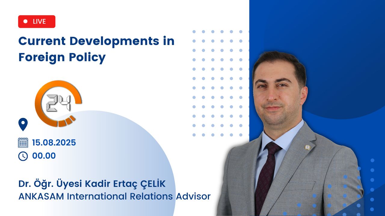 Author: ANKASAM AdminDate:15/08/2025Share:TwitterFacebookLinkedinReddItWhatsAppTelegramEmailPrintCopy URL EVENTSAnnouncementsANKASAM International Relations Advisor Dr. Kadir Ertaç Çelik on 24TV! Similar Posts GLOBALPakistani PM: Trump Prevented War in Asia ANKASAM OUTLOOKFuture Prospects in Turkish-American Relations and the “TRC Alliance” CENTRAL ASIABerdymukhamedov in Baku: Azerbaijan and Turkmenistan intensify dialogue on key issues EURASIARussia interested in developing ties with Armenia in all areas — Kremlin spokesman EUROPEEU Decides to Lift Economic Sanctions on SyriaThis post is also available in: Türkçe Русский📆 15.08.2025⏰ 00.00📍 24TVANKASAM AdminPrevious articleANKASAM President Prof. Dr. Mehmet Seyfettin Erol on TRT Voice of Türkiye Radio!Next articleANKASAM President Prof. Dr. Mehmet Seyfettin Erol on AZTV!