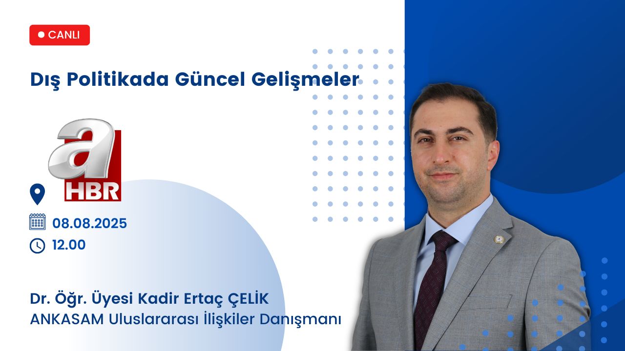 Yazar: ANKASAM AdminTarih:08/08/2025Paylaş:TwitterFacebookLinkedinReddItWhatsAppTelegramEmailYazdırCopy URL ETKİNLİKLERDuyurularANKASAM Uluslararası İlişkiler Danışmanı Dr. Öğr. Üyesi Kadir Ertaç Çelik A Haber TV’de! Benzer İçerikler ANKASAM BAKIŞTürk-Amerikan İlişkilerinde Gelecek Arayışları ve “TRÇ İttifakı” HABERLERBerdimuhamedov Bakü’de: Azerbaycan ve Türkmenistan önemli konularda diyaloğu hızlandırıyor AVRASYAKremlin Sözcüsü: “Rusya, Ermenistan’la tüm alanlarda ilişkileri geliştirmeye ilgi duyuyor” AVRUPAAB, Suriye’ye yönelik ekonomik yaptırımları kaldırma kararı aldı ASYA-PASİFİKTayland ve Endonezya, İlişkilerini Stratejik Ortaklık Düzeyine YükselttiBu yazı şu dillerde de mevcuttur: English Русский📆 08.08.2025⏰ 12.00📍 A Haber TVANKASAM AdminÖnceki İçerikANKASAM Başkanı Prof. Dr. Mehmet Seyfettin Erol TRT Ankara Radyosu’nda!Sonraki İçerikANKASAM Uluslararası İlişkiler Danışmanı Dr. Öğr. Üyesi Kadir Ertaç Çelik Ülke TV’de!