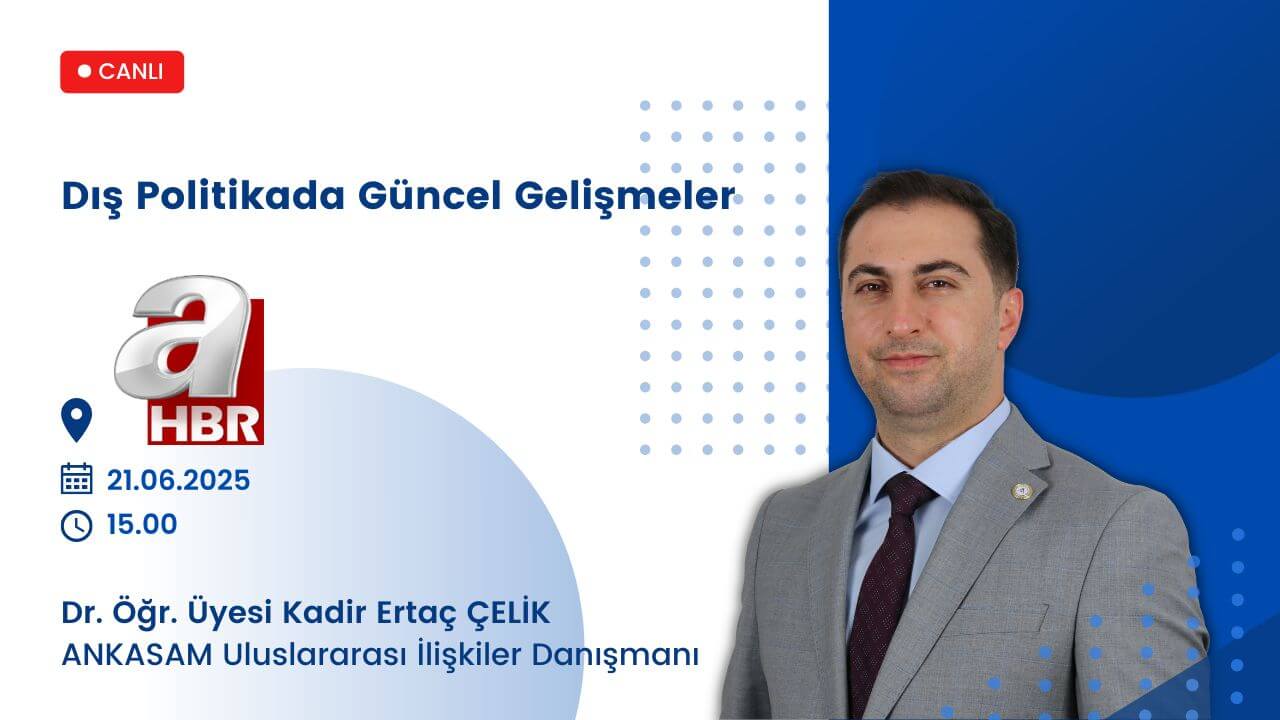 Yazar: ANKASAM AdminTarih:21/06/2025Paylaş:TwitterFacebookLinkedinReddItWhatsAppTelegramEmailYazdırCopy URL DuyurularANKASAM Uluslararası İlişkiler Danışmanı Dr. Öğr. Üyesi Kadir Ertaç Çelik A Haber’de! Benzer İçerikler ANKASAM BAKIŞTürk-Amerikan İlişkilerinde Gelecek Arayışları ve “TRÇ İttifakı” HABERLERBerdimuhamedov Bakü’de: Azerbaycan ve Türkmenistan önemli konularda diyaloğu hızlandırıyor AVRASYAKremlin Sözcüsü: “Rusya, Ermenistan’la tüm alanlarda ilişkileri geliştirmeye ilgi duyuyor” AVRUPAAB, Suriye’ye yönelik ekonomik yaptırımları kaldırma kararı aldı ASYA-PASİFİKTayland ve Endonezya, İlişkilerini Stratejik Ortaklık Düzeyine Yükseltti🗓️ 21.06.2025⏰ 15.00📍 A HaberANKASAM AdminÖnceki İçerikANKASAM Başkanı Prof. Dr. Mehmet Seyfettin Erol Takvim’de Trump’ın Planını ve GBU-57’nin Kullanılmasının Ortaya Çıkaracağı Sonuçları DeğerlendirdiSonraki İçerikANKASAM Uluslararası İlişkiler Danışmanı Dr. Öğr. Üyesi Kadir Ertaç Çelik A Haber’de!