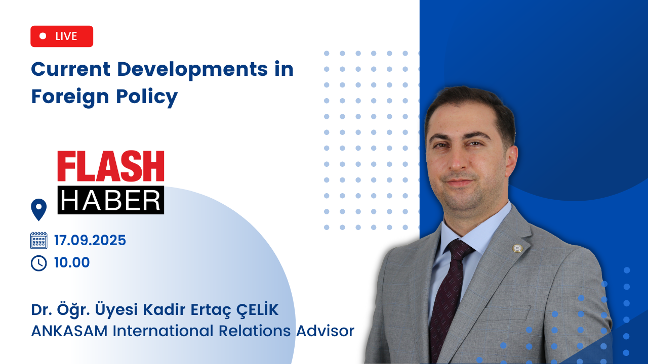 Author: ANKASAM AdminDate:16/09/2025Share:TwitterFacebookLinkedinReddItWhatsAppTelegramEmailPrintCopy URL AnnouncementsANKASAM International Relations Advisor Dr. Kadir Ertaç Çelik on Flash Haber TV! Similar Posts GLOBALPakistani PM: Trump Prevented War in Asia ANKASAM OUTLOOKFuture Prospects in Turkish-American Relations and the “TRC Alliance” CENTRAL ASIABerdymukhamedov in Baku: Azerbaijan and Turkmenistan intensify dialogue on key issues EURASIARussia interested in developing ties with Armenia in all areas — Kremlin spokesman EUROPEEU Decides to Lift Economic Sanctions on SyriaThis post is also available in: Türkçe Русский📆 17.09.2025⏰ 10.00📍 Flash Haber TVANKASAM AdminPrevious articleANKASAM President Prof. Dr. Mehmet Seyfettin Erol on TRT Voice of Türkiye Radio!Next articleANKASAM International Relations Advisor Dr. Kadir Ertaç Çelik on TürkHaber Tv!