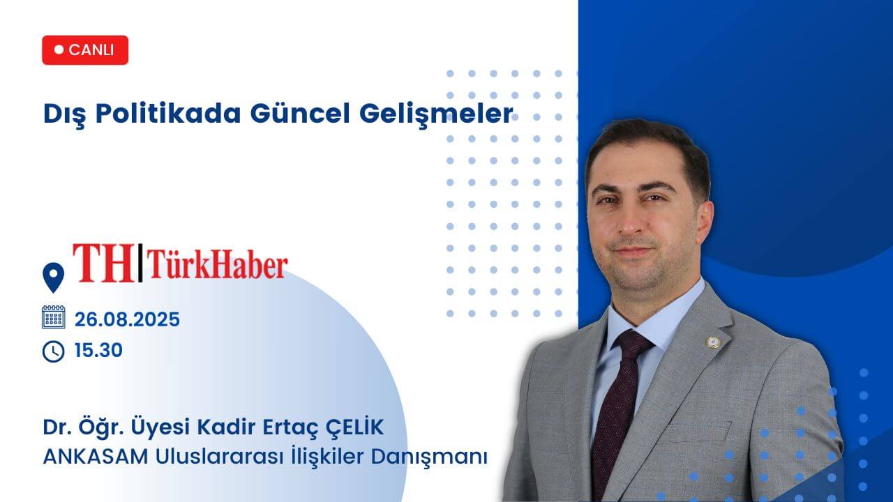 Yazar: ANKASAM AdminTarih:25/08/2025Paylaş:TwitterFacebookLinkedinReddItWhatsAppTelegramEmailYazdırCopy URL DuyurularANKASAM Uluslararası İlişkiler Danışmanı Dr. Öğr. Üyesi Kadir Ertaç Çelik Türkhaber TV’de! Benzer İçerikler ANKASAM BAKIŞTürk-Amerikan İlişkilerinde Gelecek Arayışları ve “TRÇ İttifakı” HABERLERBerdimuhamedov Bakü’de: Azerbaycan ve Türkmenistan önemli konularda diyaloğu hızlandırıyor AVRASYAKremlin Sözcüsü: “Rusya, Ermenistan’la tüm alanlarda ilişkileri geliştirmeye ilgi duyuyor” AVRUPAAB, Suriye’ye yönelik ekonomik yaptırımları kaldırma kararı aldı ASYA-PASİFİKTayland ve Endonezya, İlişkilerini Stratejik Ortaklık Düzeyine Yükseltti📆 26.08.2025⏰ 15.30📍 Türkhaber TVANKASAM AdminÖnceki İçerikANKASAM Başkanı Prof. Dr. Mehmet Seyfettin Erol TRT Türkiye’nin Sesi Radyosu’nda!Sonraki İçerikANKASAM Başkanı Prof. Dr. Mehmet Seyfettin Erol Milliyet Gazetesi’nde İsrail’in Bölgesel Planları ve Trump Üzerindeki Baskıyı Değerlendirdi