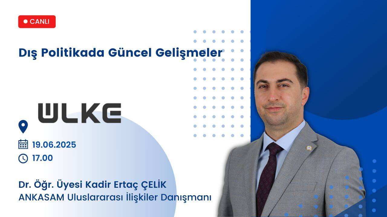 Yazar: ANKASAM AdminTarih:19/06/2025Paylaş:TwitterFacebookLinkedinReddItWhatsAppTelegramEmailYazdırCopy URL DuyurularANKASAM Uluslararası İlişkiler Danışmanı Dr. Öğr. Üyesi Kadir Ertaç Çelik Ülke TV’de! Benzer İçerikler ANKASAM BAKIŞTürk-Amerikan İlişkilerinde Gelecek Arayışları ve “TRÇ İttifakı” HABERLERBerdimuhamedov Bakü’de: Azerbaycan ve Türkmenistan önemli konularda diyaloğu hızlandırıyor AVRASYAKremlin Sözcüsü: “Rusya, Ermenistan’la tüm alanlarda ilişkileri geliştirmeye ilgi duyuyor” AVRUPAAB, Suriye’ye yönelik ekonomik yaptırımları kaldırma kararı aldı ASYA-PASİFİKTayland ve Endonezya, İlişkilerini Stratejik Ortaklık Düzeyine Yükseltti🗓️ 19.06.2025⏰ 17.00📍 Ülke TVANKASAM AdminÖnceki İçerikANKASAM Başkanı Prof. Dr. Mehmet Seyfettin Erol TRT Türkiye’nin Sesi Radyosu’nda!Sonraki İçerikANKASAM Başkanı Prof. Dr. Mehmet Seyfettin Erol Habertürk TV’de İsrail ve İran Gelişmeleri Çerçevesinde Dış Politikada Güncel Gelişmeleri Değerlendirdi
