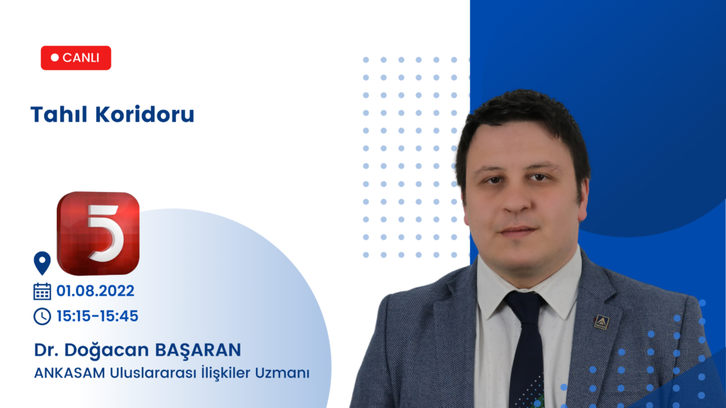 Tarih:01/08/2022Paylaş:TwitterFacebookLinkedinReddItWhatsAppTelegramEmailYazdırCopy URL DuyurularANKASAM Uluslararası İlişkiler Uzmanı Dr. Doğacan Başaran, TV5’teÖnerilenler Dr. Doğacan Başaran 01.08.2022 15:15-15:45 TV5Tahıl Koridoruİzlemek için tıklayınızÖnceki İçerikANKASAM Başkanı Prof. Dr. Mehmet Seyfettin Erol: Tahıl Koridoru Barışa Giden Bir YolSonraki İçerikANKASAM Uluslararası İlişkiler Danışmanı Dr. Kadir Ertaç Çelik, Bengütürk TV’de